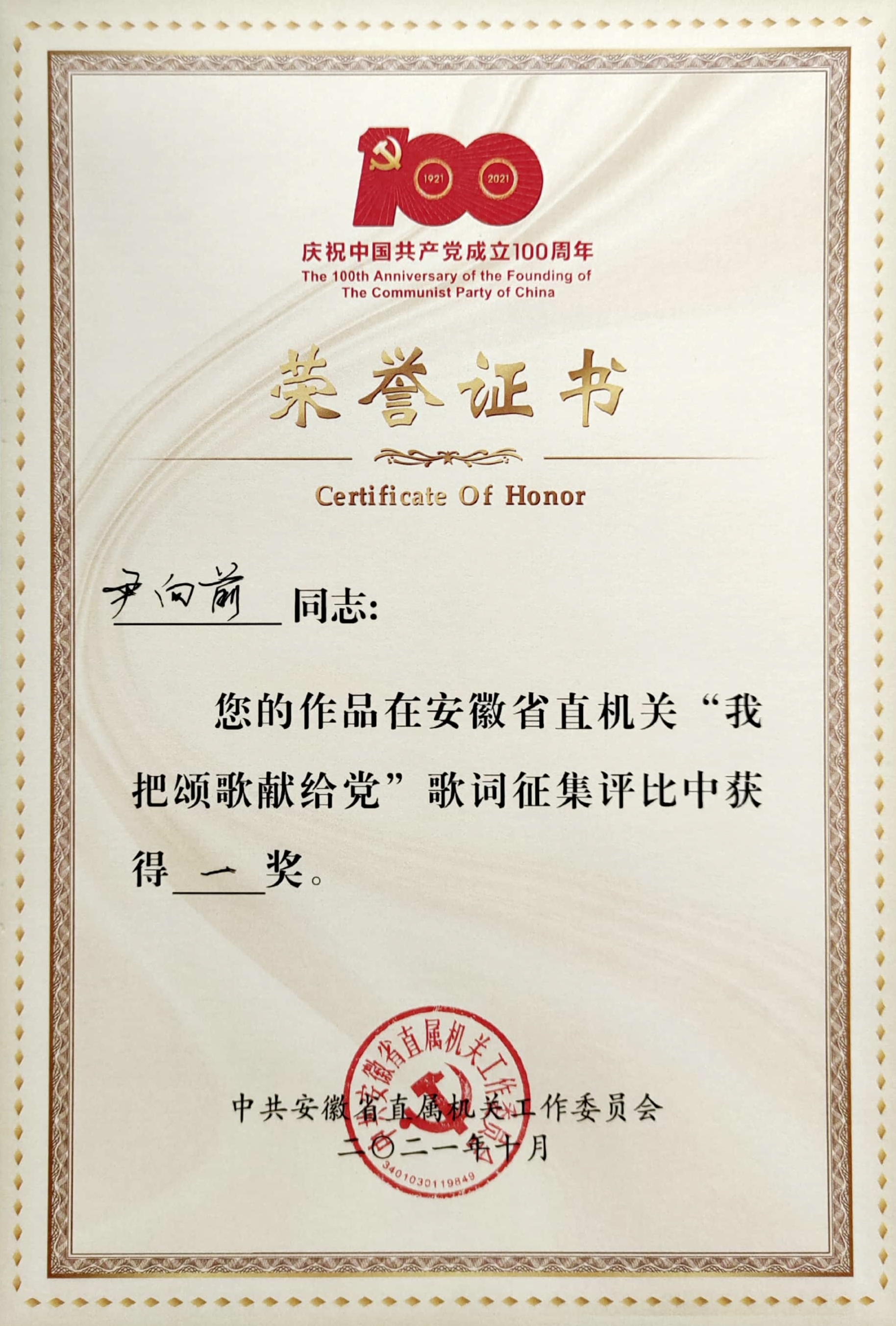 據(jù)悉,為隆重慶祝中國(guó)共產(chǎn)黨成立100周年,大力唱響共產(chǎn)黨好、社會(huì)主義好、改革開(kāi)放好、偉大祖國(guó)好、各族人民好的時(shí)代主旋律,中共安徽省直機(jī)關(guān)工委組織開(kāi)展了本次活動(dòng)。我校音樂(lè)組尹向前老師精心構(gòu)思,潛心創(chuàng)作,積極參與歌詞征集評(píng)比活動(dòng),最終獲得佳績(jī),展現(xiàn)了三中教師良好的精神風(fēng)貌和過(guò)硬的能力素養(yǎng)。