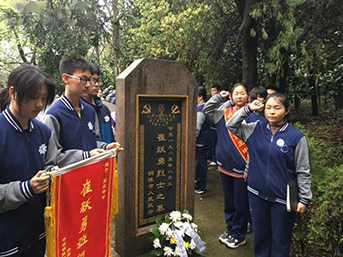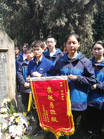 今年4月1日,在銅陵市笠帽山烈士陵園,該校第16屆“崔躍勇班級(jí)”交接儀式在莊嚴(yán)肅穆的氛圍中有序進(jìn)行著,高一(10)班師生代表從上一屆“崔躍勇班級(jí)”高三(9)班接過(guò)班旗,并進(jìn)行宣誓,“我將矢志不移,傳承先烈精神,繼承光榮傳統(tǒng),刻苦學(xué)習(xí),努力拼搏,為實(shí)現(xiàn)中華民族偉大復(fù)興而不懈奮斗……”錚錚誓言響徹陵園上空。