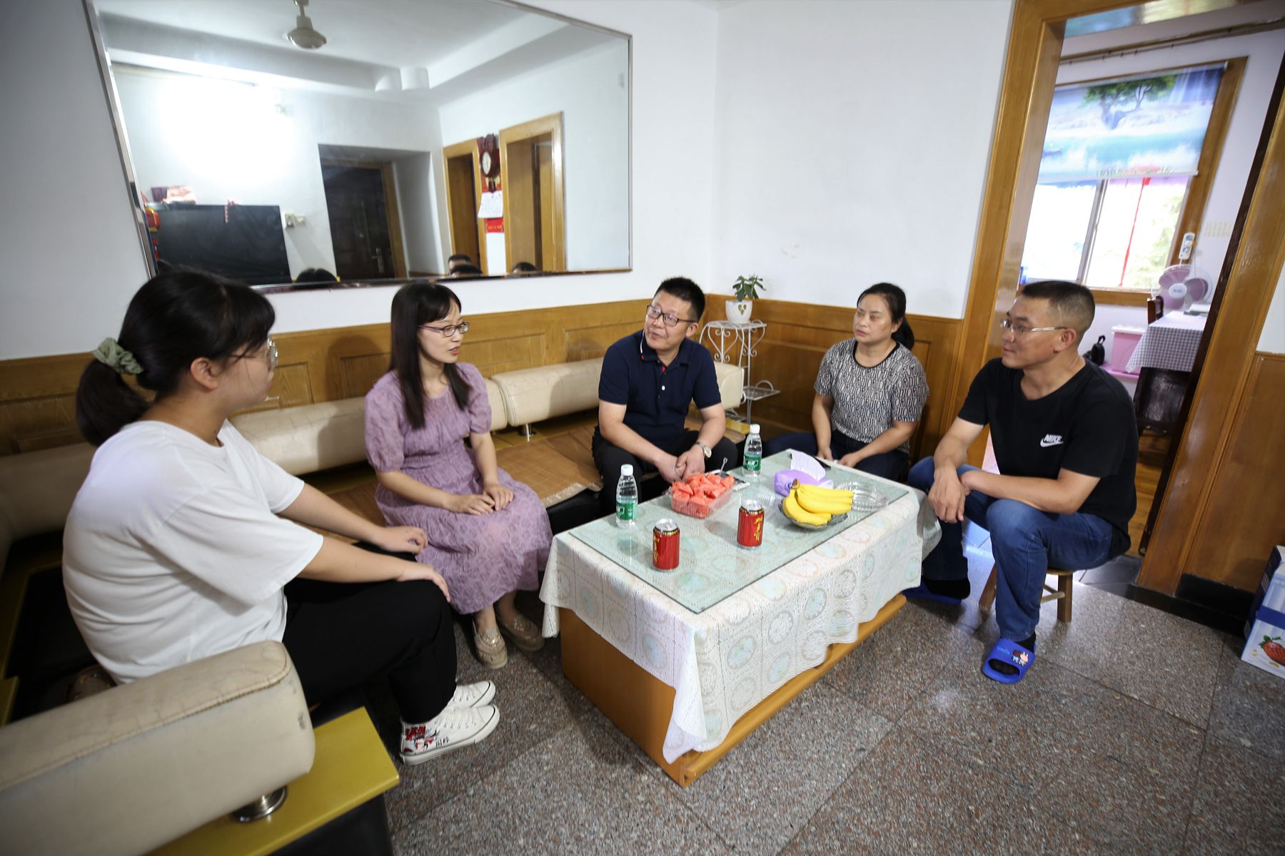 七一建黨百年前夕, 6月26日下午,帶著沉甸甸的愛,高一年級部部長徐雄、高一(15)班主任劉菊花老師赴陳天瑜同學(xué)家看望慰問,送去了牛奶等日常生活用品。