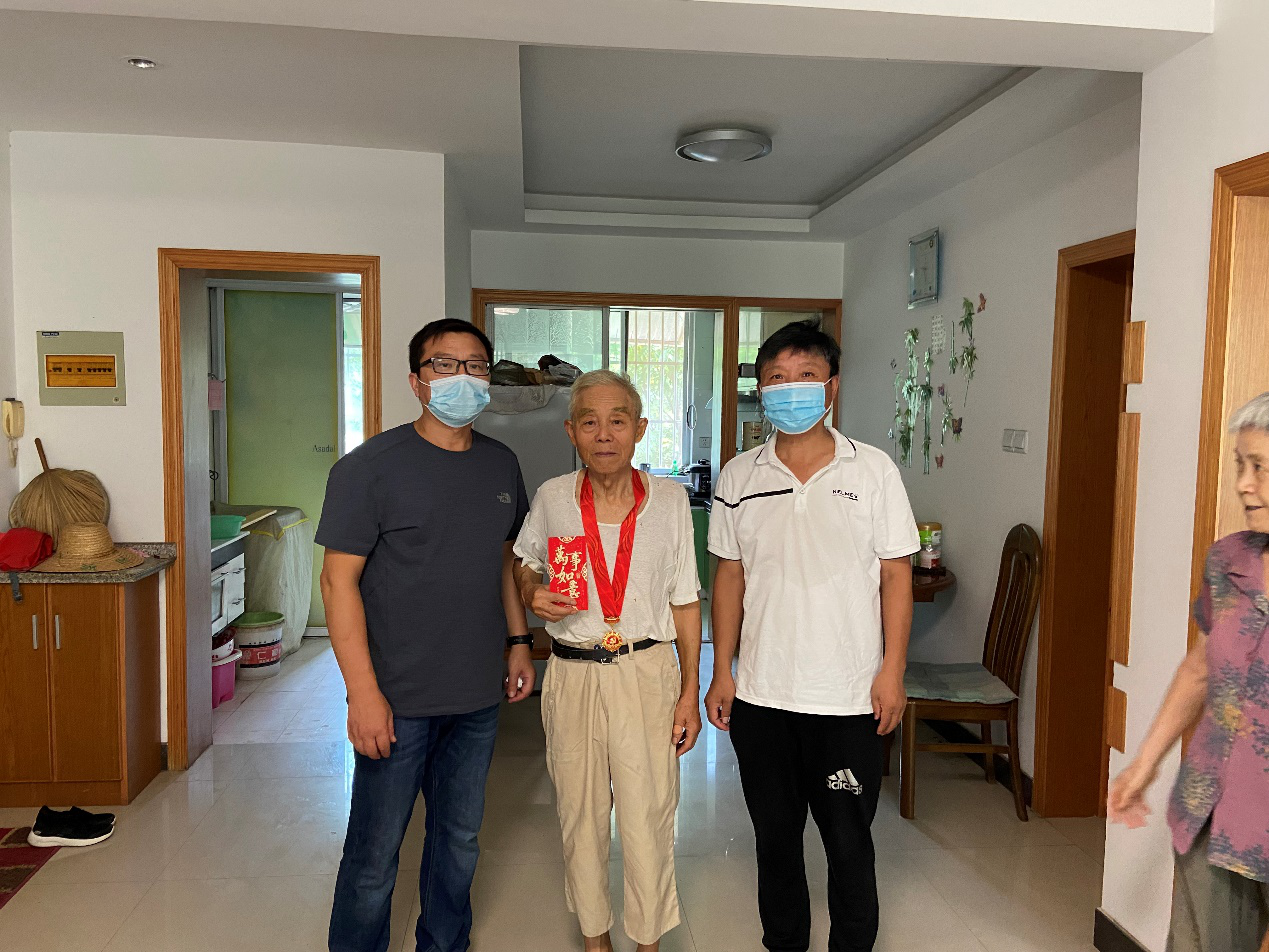 在退休教師郭老師家中,校工會主席王思榮和保衛(wèi)科負(fù)責(zé)人凌興民向郭老師轉(zhuǎn)達學(xué)校對退役軍人節(jié)日的慰問,并詳細(xì)詢問了郭老師的身體狀況及生活情況,認(rèn)真傾聽郭老師對崢嶸歲月的回憶。