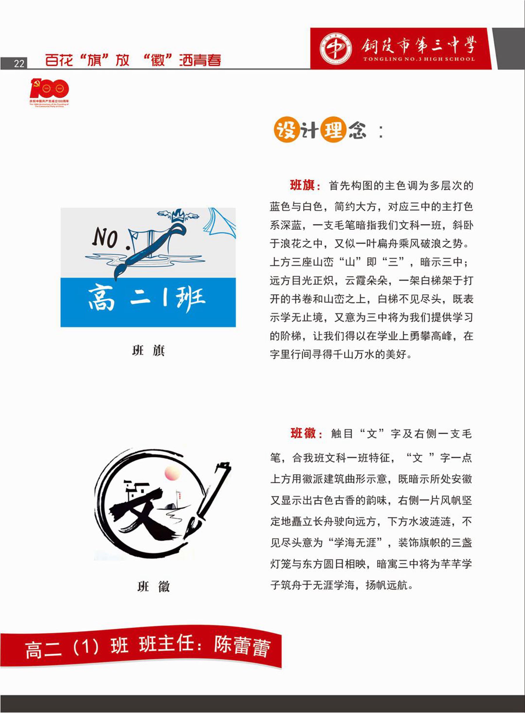 為慶祝建黨一百周年,展現(xiàn)我校深厚的文化底蘊(yùn)及五育并舉的教學(xué)成果,豐富同學(xué)們的課余生活,我校舉辦了第一屆班旗班徽大賽。班旗班徽作為班級(jí)個(gè)性文化的體現(xiàn),是一個(gè)班級(jí)獨(dú)一無二的標(biāo)志,代表了一個(gè)班級(jí)的形象,是班級(jí)凝聚力和向心力的象征。此次大賽不僅很好的體現(xiàn)了這一點(diǎn),也讓許多同學(xué)的才華得以發(fā)揮。