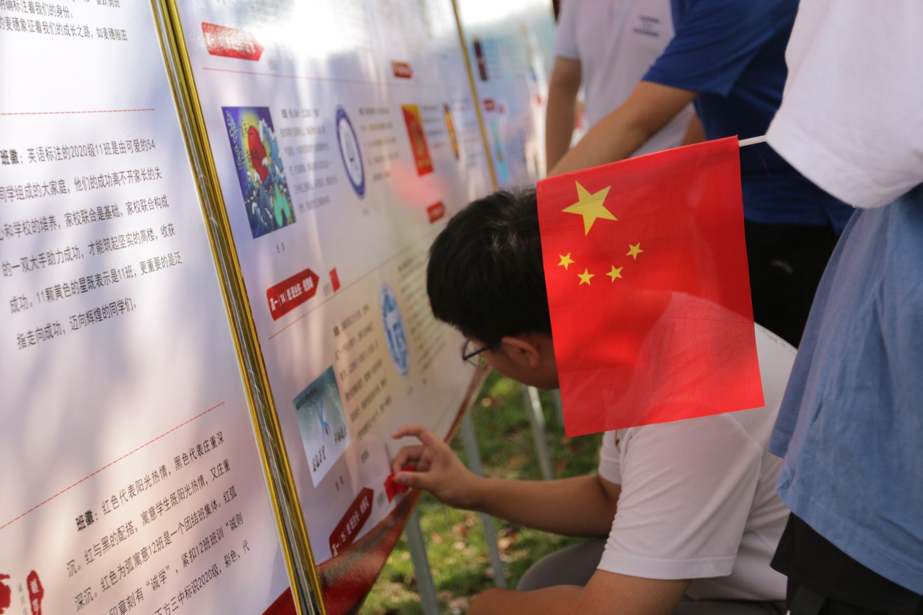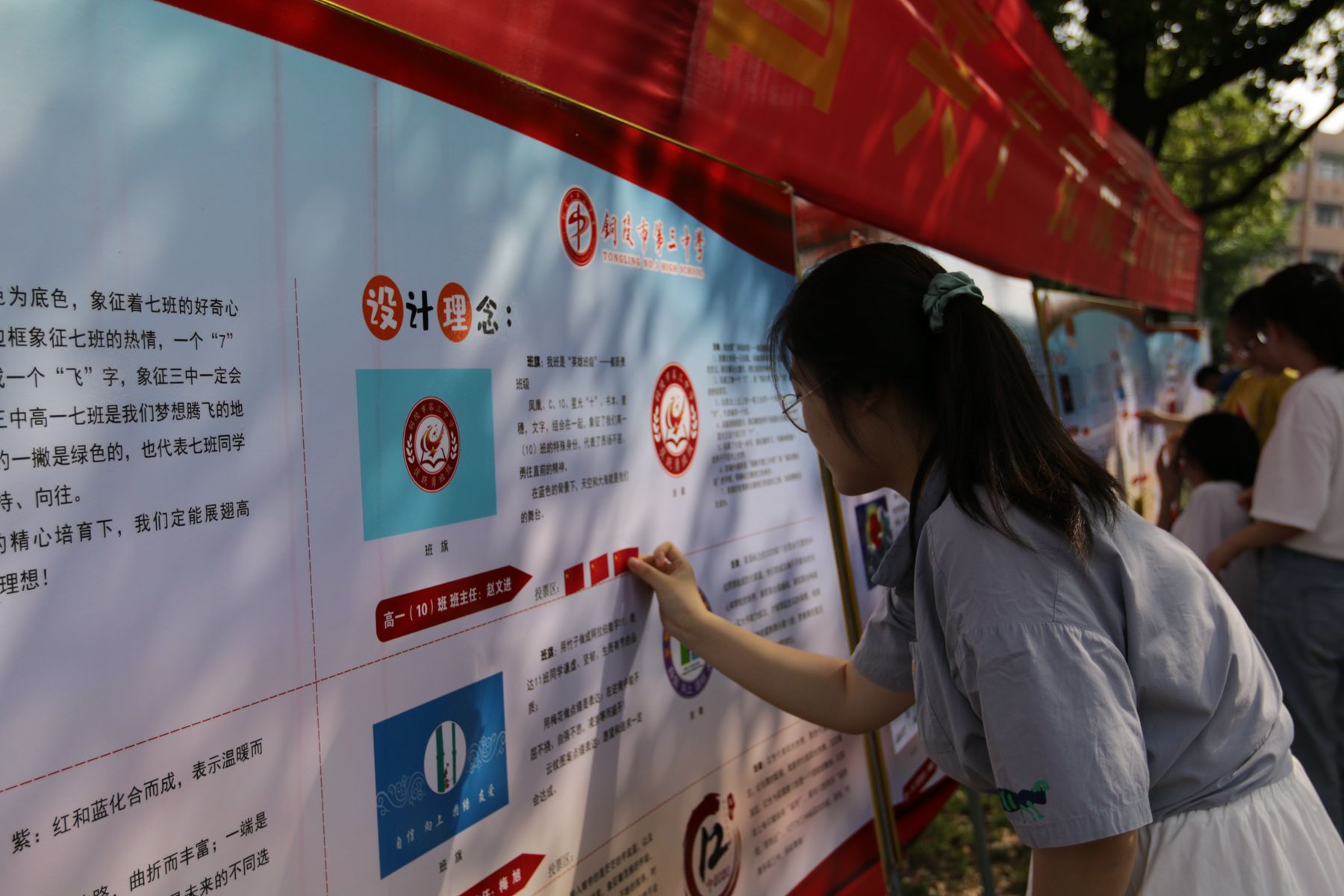 7月2日上午齊聚班徽班旗展板處,參賽人員在評(píng)比時(shí)間內(nèi)進(jìn)行現(xiàn)場解說,秉持著高一高二年級(jí)互投原則,由政教處及藝術(shù)組老師組成評(píng)委團(tuán),進(jìn)行現(xiàn)場投票打分,本階段評(píng)選出一等獎(jiǎng)4名,二三等獎(jiǎng)及優(yōu)秀獎(jiǎng)若干。組委會(huì)分別給所有獲獎(jiǎng)班級(jí)頒發(fā)了獎(jiǎng)品和獎(jiǎng)狀。