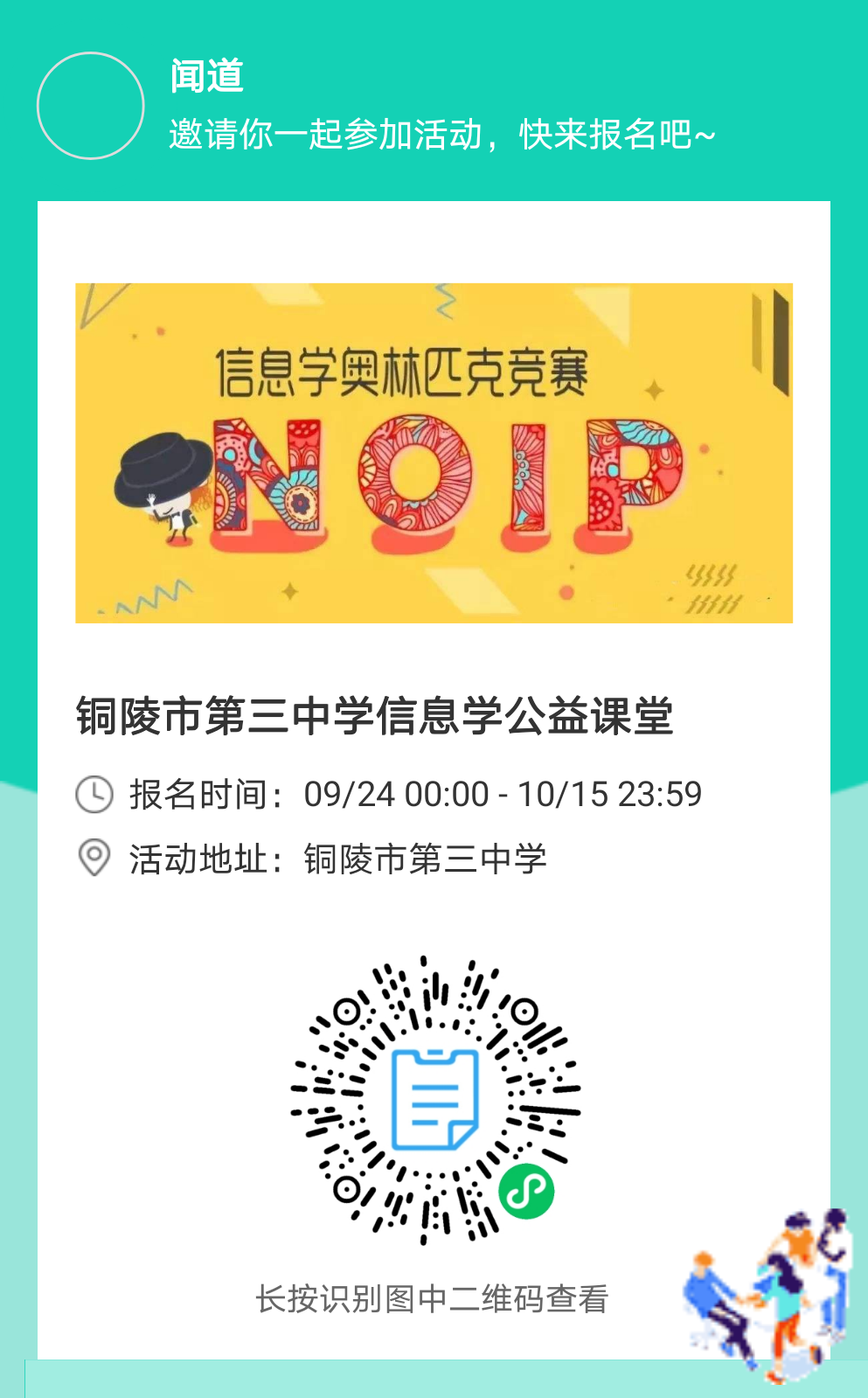 為普及計(jì)算機(jī)編程基礎(chǔ)知識(shí),培養(yǎng)中小學(xué)生學(xué)習(xí)編程的興趣,提高他們創(chuàng)造性地運(yùn)用程序設(shè)計(jì)解決實(shí)際問題的能力,銅陵三中開設(shè)信息學(xué)公益課堂,向中小學(xué)生共享高水平機(jī)器人競賽教學(xué)資源和信息學(xué)教育資源,滿足對(duì)機(jī)器人和編程感興趣、有特長的孩子的需要,豐富他們的課余生活。