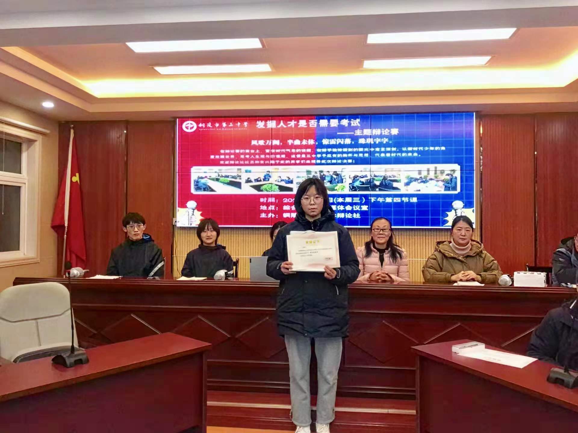 激烈的辯論結(jié)束之后,社團(tuán)成員舉手表決,選出本場最受歡迎的辯手高一(13)班湛子嫻同學(xué)。隨后,兩位學(xué)生評委從不同角度點評雙方優(yōu)缺點,真誠的給與雙方辯手建議和改進(jìn)的方向。比賽現(xiàn)場,評委老師們?yōu)楂@勝的反方辯論隊和正方優(yōu)秀辯手高一(10)班安若熙同學(xué)頒發(fā)獎狀和獎品。