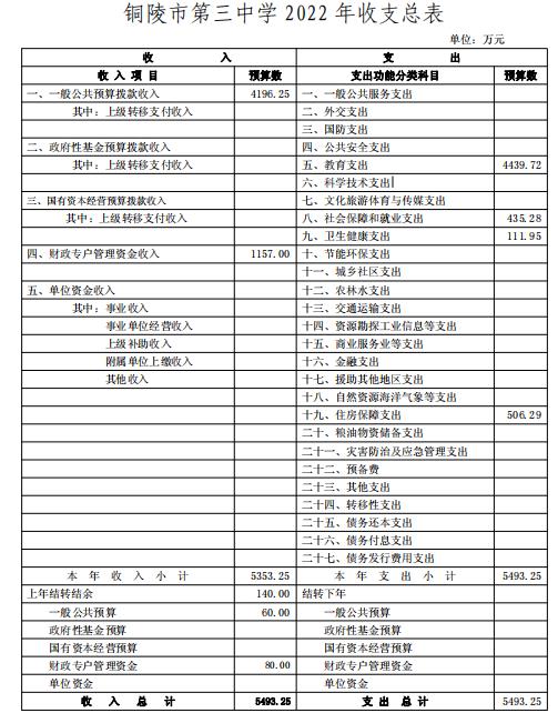 1.銅陵市第三中學(xué) 2022 年收支總表
