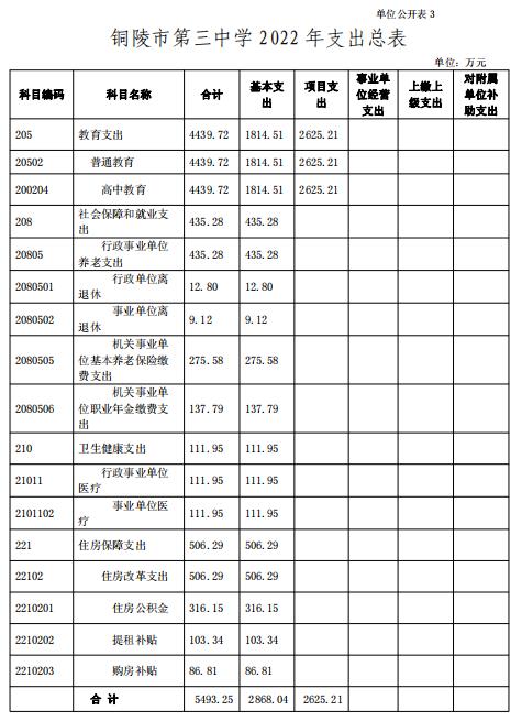 3.銅陵市第三中學(xué) 2022 年支出總表