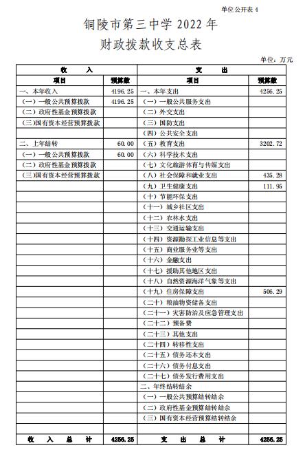 4.銅陵市第三中學(xué) 2022 年財(cái)政撥款收支總表