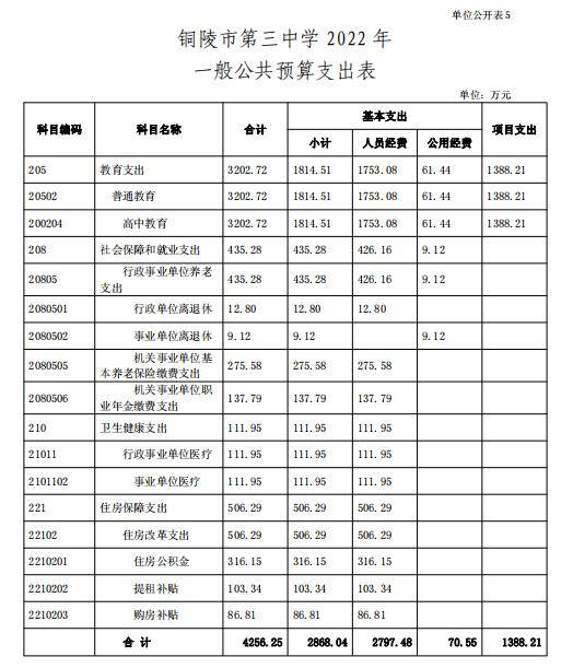 5.銅陵市第三中學(xué) 2022 年一般公共預(yù)算支出表