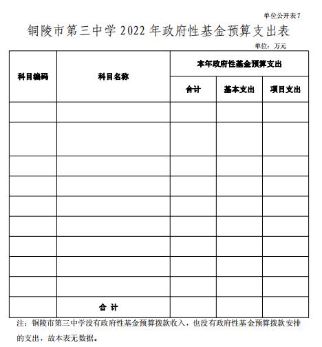 7.銅陵市第三中學(xué) 2022 年政府性基金預(yù)算支出表