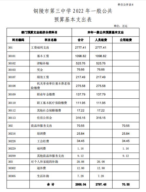 6.銅陵市第三中學(xué) 2022 年一般公共預(yù)算基本支出表