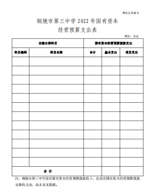 8.銅陵市第三中學(xué) 2022 年國(guó)有資本經(jīng)營(yíng)預(yù)算支出表
