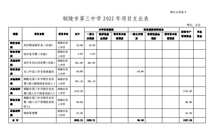 9.銅陵市第三中學(xué) 2022 年項(xiàng)目支出表