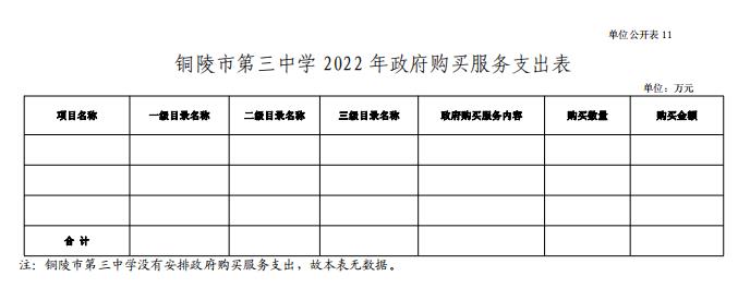 銅陵市第三中學(xué) 2022 年沒(méi)有安排政府購(gòu)買(mǎi)服務(wù)支出。