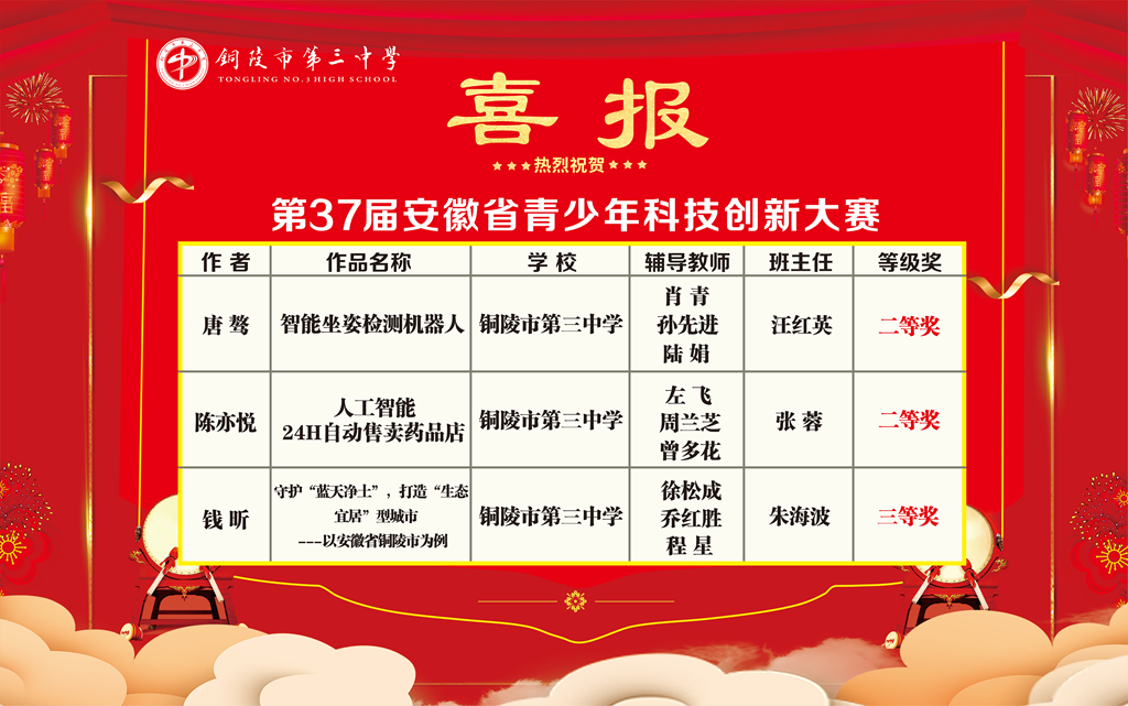 近日,在第37屆安徽省青少年科技創(chuàng)新大賽中,我校學(xué)生三個(gè)項(xiàng)目榜上有名,可喜可賀。
