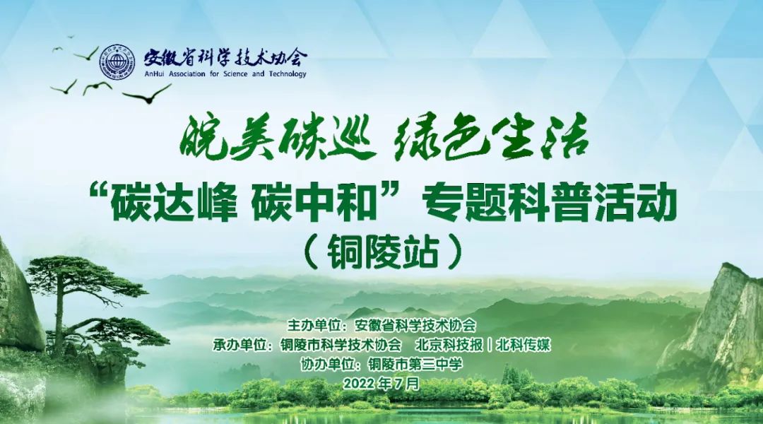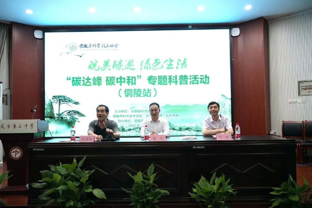 7月7日下午,由安徽省科學(xué)技術(shù)協(xié)會主辦、銅陵市科學(xué)技術(shù)協(xié)會和北京科技報(北科傳媒)承辦、銅陵市第三中學(xué)協(xié)辦的“皖美碳巡 綠色生活”——碳達峰、碳中和專題科普活動(銅陵站)今天下午在多功能廳舉行。