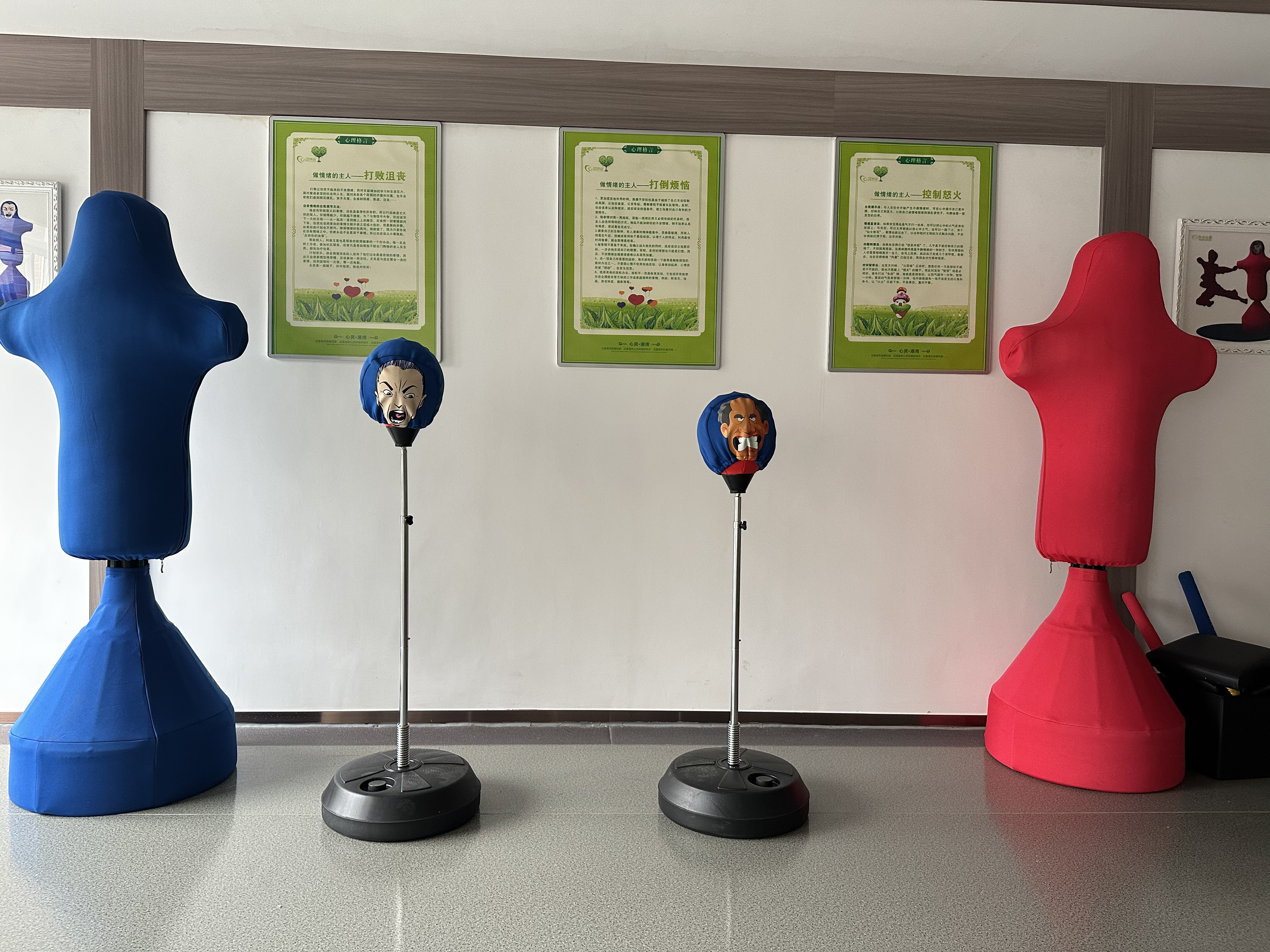 宣泄室是來訪者宣泄內(nèi)心情緒的場地。來訪者可將內(nèi)心沖突所產(chǎn)生的負(fù)性情緒、心理能量通過一個(gè)安全合適的途徑和方式排解、宣泄出來,再結(jié)合心理老師的引導(dǎo),促進(jìn)個(gè)體的心理健康提高。若你覺得只用語言訴說你的憤怒、痛苦、煎熬太無力時(shí),來吧,請(qǐng)你重拳出擊!宣泄假人很抗揍。