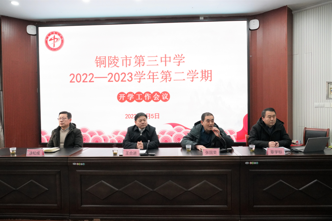 會(huì)上,章學(xué)標(biāo)、徐松成、張國(guó)榮分別就分管的工作領(lǐng)域進(jìn)行了周密的安排部署,明確了2023年我校教育工作思路和方向目標(biāo),努力促進(jìn)學(xué)校持續(xù)、協(xié)調(diào)和健康發(fā)展,實(shí)現(xiàn)銅陵三中跨越式發(fā)展。