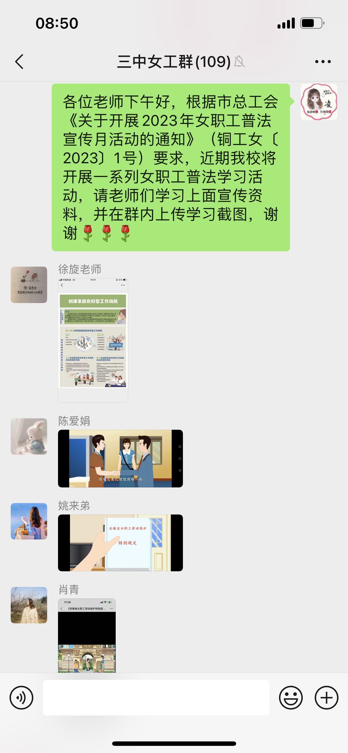 根據(jù)銅陵市總工會《關(guān)于開展2023年女職工普法宣傳月活動的通知》要求,為深入學(xué)習(xí)貫徹黨的二十大精神,依法保障女職工的合法權(quán)益和特殊利益,在第113個“三八”國際婦女節(jié)之際,我校開展了一系列女職工普法學(xué)習(xí)活動。