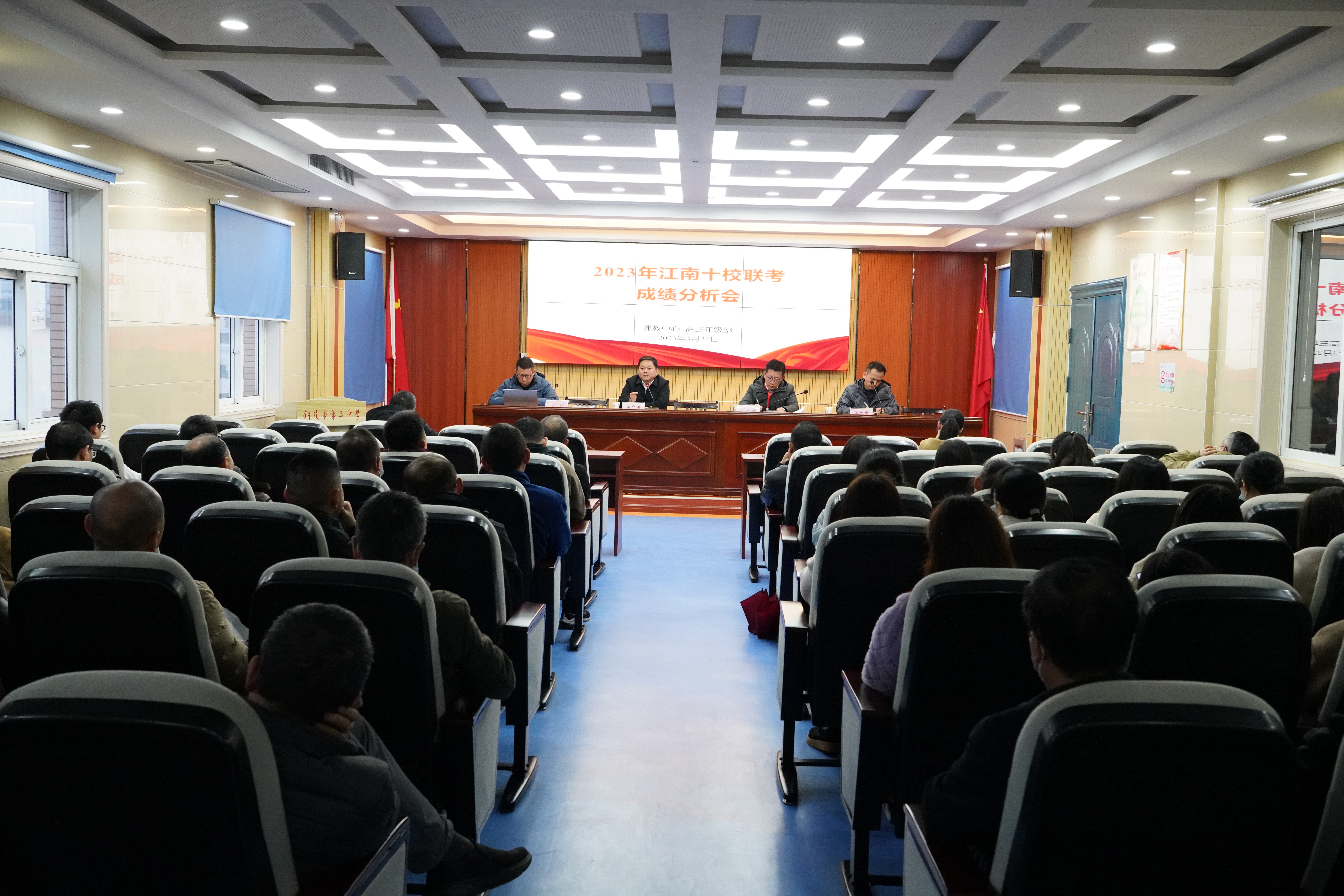 3月22日下午,高三級部在躬行樓五樓召開2023年江南十校聯(lián)考成績分析會。校黨委副書記、副校長王合進,校黨委委員、副校長徐松成,課教中心主任、高三級部主任徐盼,高三級部教學(xué)部長汪春生及全體高三教師出席會議。會議由汪春生主持。