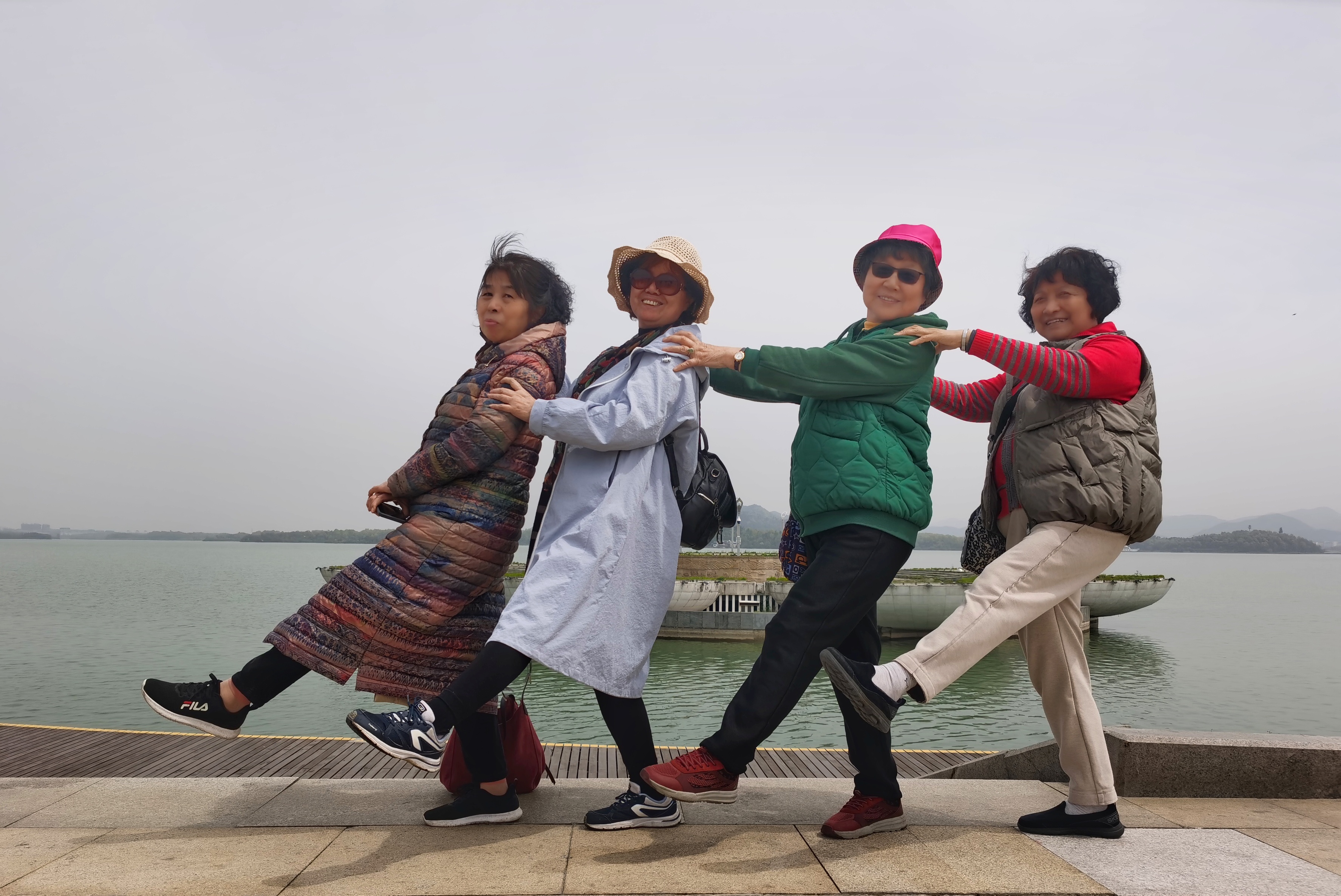 老教師們興致勃勃地游覽池州風(fēng)光,擺個(gè)pose,拍拍照;嘮嘮家常,談?wù)勑;甚至圍坐起?lái),打打牌。老教師們盡情陶醉在大自然的美景中,大家的臉上洋溢著快樂(lè)的笑容。