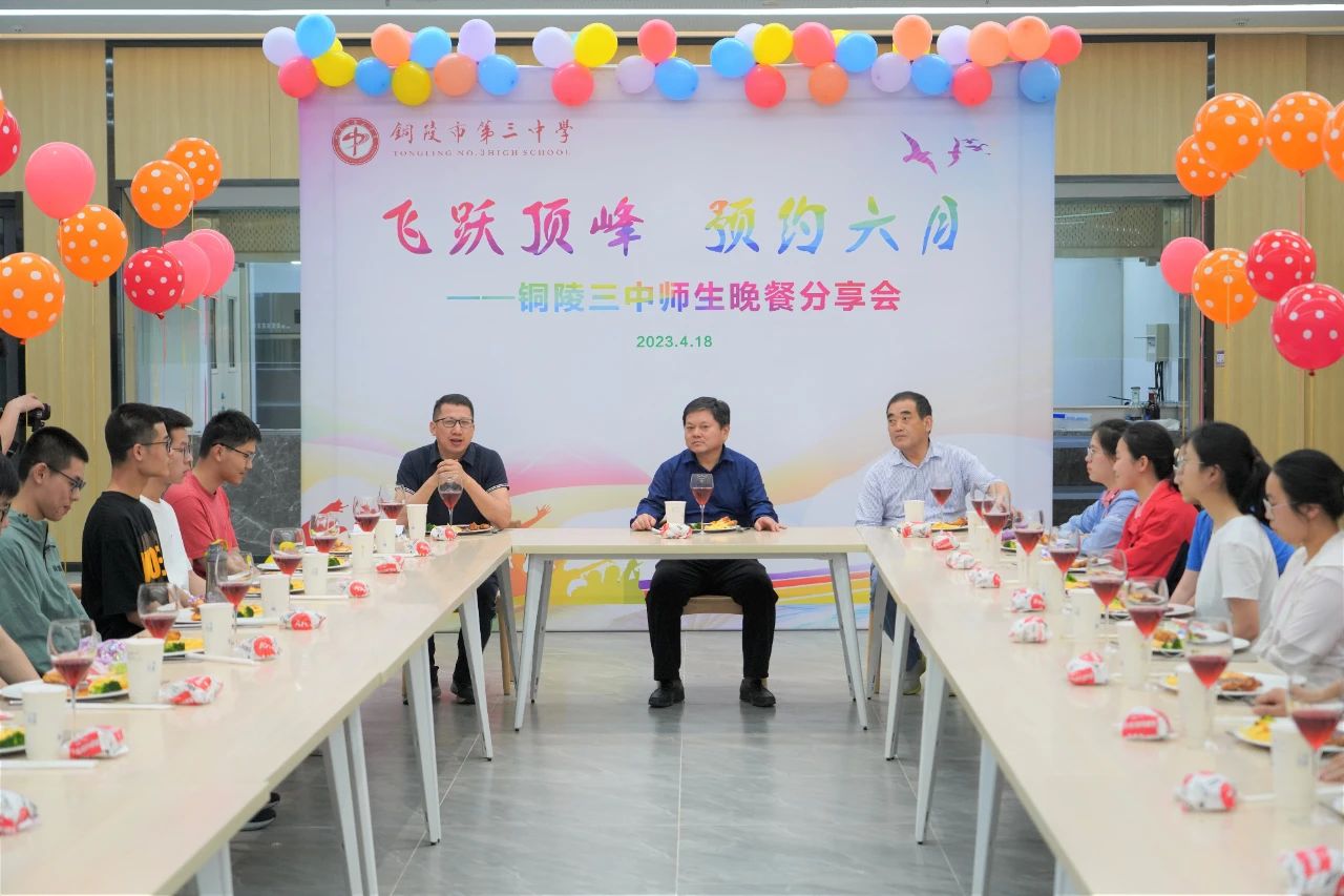 彩色氣球、紅色蠟燭、精美刀叉、佳肴點(diǎn)心……為愛(ài)賦能,助力高考,4月18日晚,我校舉辦“飛躍頂峰 預(yù)約六月——銅陵三中師生晚餐分享會(huì)”。