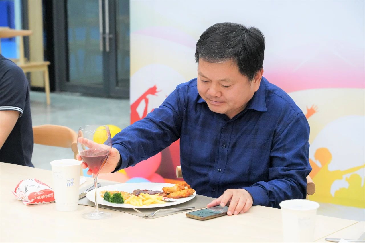 晚上6點(diǎn)10分,師生晚餐分享會(huì)在輕松愉悅的氛圍中共進(jìn)晚餐。王校長(zhǎng)詳細(xì)詢(xún)問(wèn)了師生備考和生活情況,現(xiàn)場(chǎng)氣氛熱烈,其樂(lè)融融。