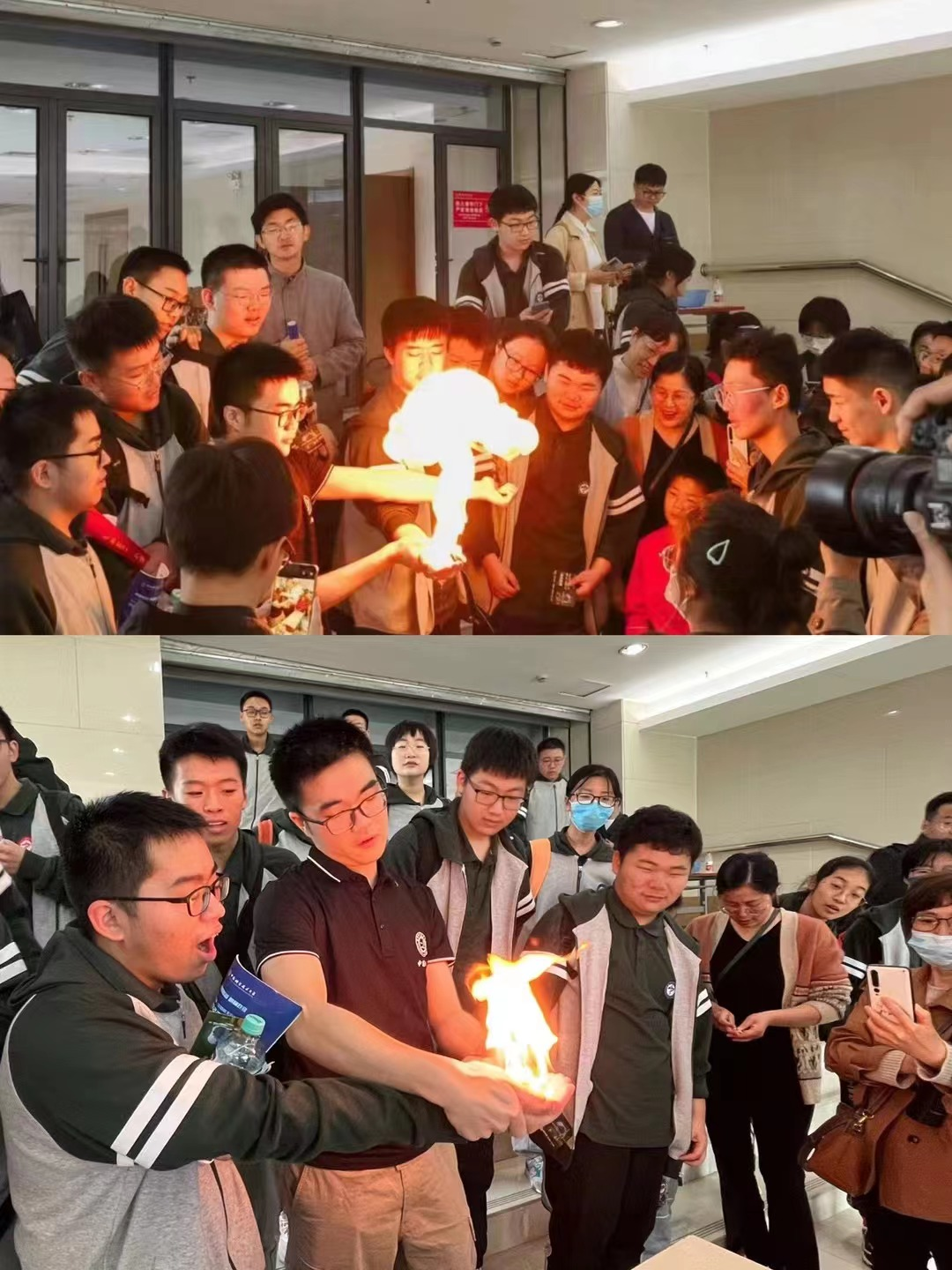最吸引三中學(xué)子們的是親手參與趣味防火試驗:水中燃燒、手掌接火等活動吸引了大批學(xué)生。在大學(xué)生志愿者的細(xì)心講解和實驗指導(dǎo)下,三中學(xué)子們躍躍欲試,親身體驗實驗的無限樂趣。