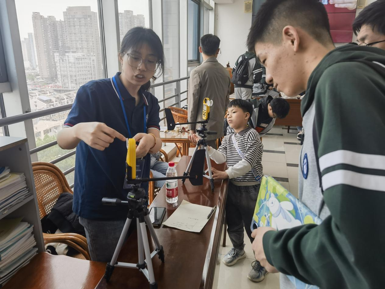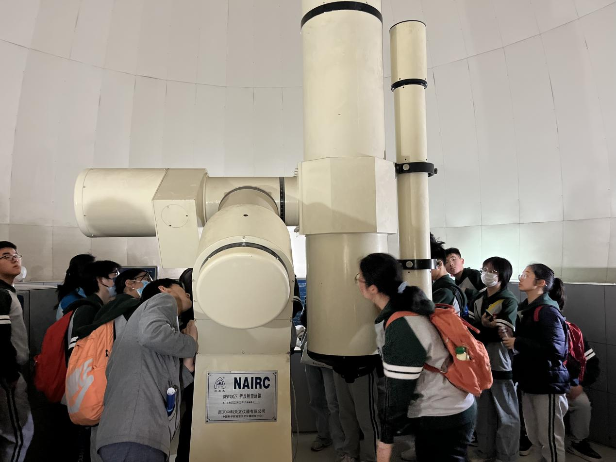 同學(xué)們觀看了有關(guān)宇宙起源以及地球在宇宙中的位置的科普宣傳片,被深邃而又充滿奧秘的宇宙空間深深吸引,激發(fā)了想要探索宇宙的興趣。而在儀器室中,同學(xué)們見到了超大的折反射望遠(yuǎn)鏡,可觀測到太陽黑子、太陽風(fēng)等太陽活動,開闊了學(xué)生們的眼界。
