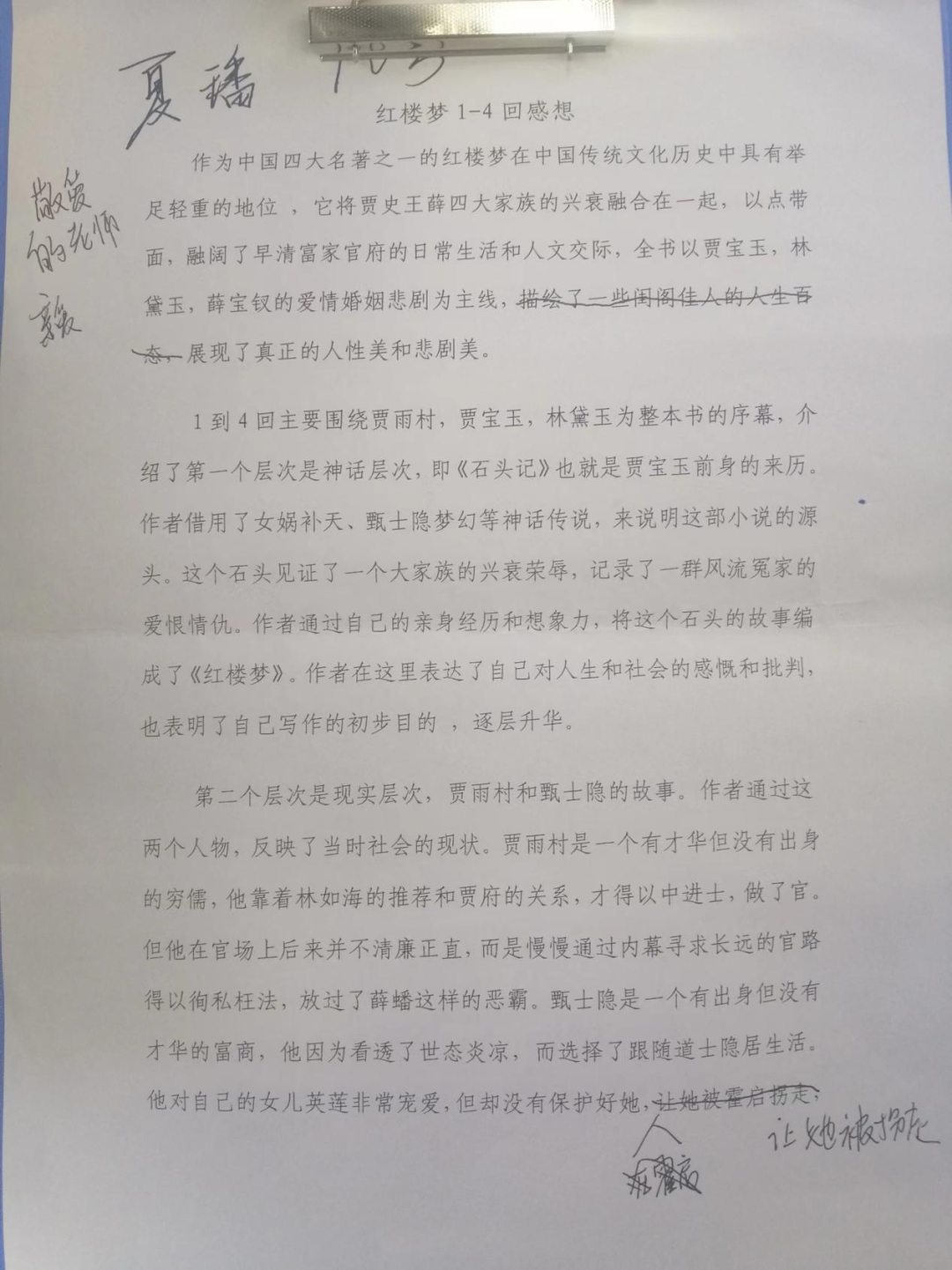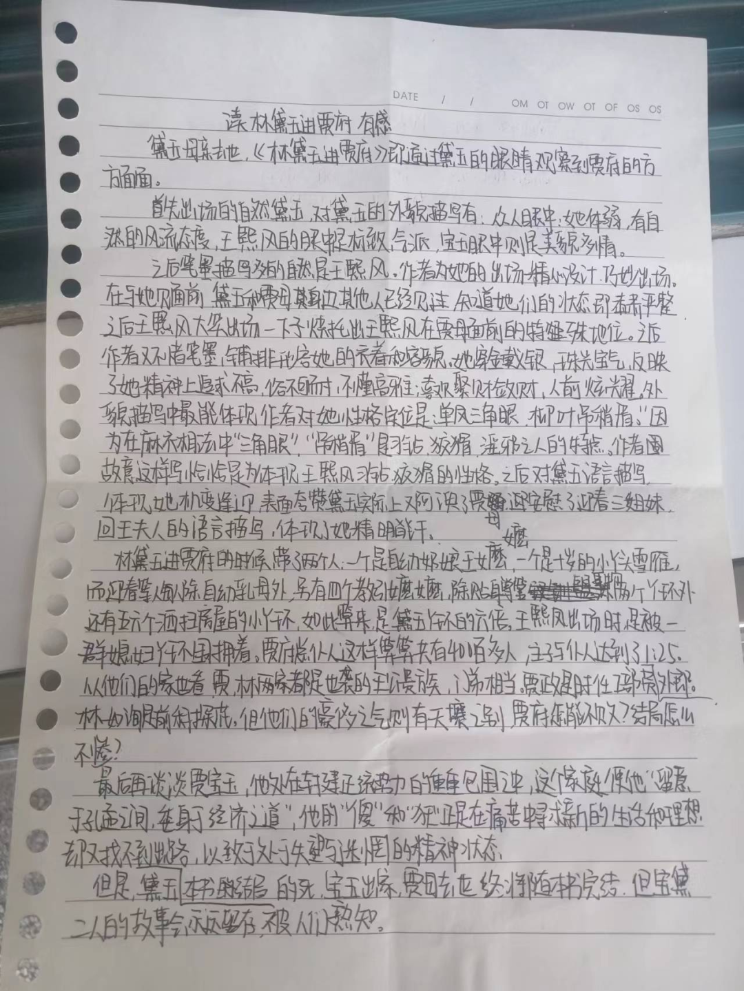 俞林瑞:經(jīng)過幾周的語文課上的紅樓夢演講活動以后,我感受頗深。同學(xué)們用心準(zhǔn)備的素材,流利的演講,毫不怯場的表現(xiàn),都是值得我去學(xué)習(xí)的。一張張精美的配圖,每一句鏗鏘有力的演講,每一位同學(xué)演講的風(fēng)格與角度都不同,他們用自己的方式讓我知道:原來《紅樓夢》還隱藏著這么一層含義!原來這位人物是話里有話!原來結(jié)局還可以如此解讀!在舉行這次活動之前,我對紅樓夢的認(rèn)識還停留在“四大名著之一”的印象中。但自此之后我知道《紅樓夢》不僅僅是一本書,也是封建社會的縮影,讓我從另一個角度認(rèn)識那段歷史。自這次活動之后,我對《紅樓夢》的興趣也更加濃厚,決心要多讀上幾次,體味紅樓之美!