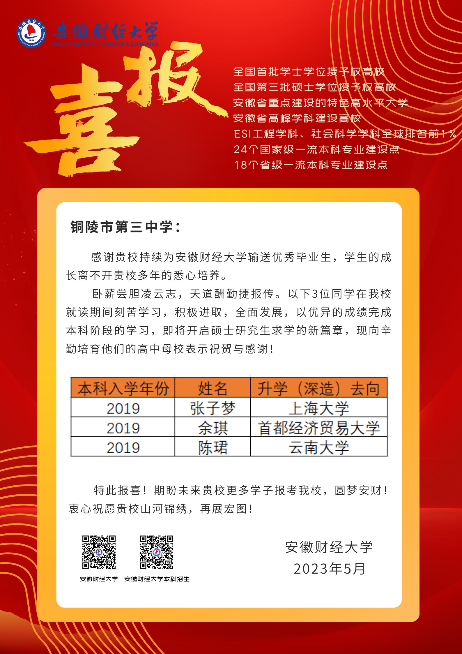 安徽財(cái)經(jīng)大學(xué)向我校發(fā)來(lái)喜報(bào)