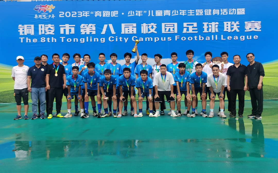 在日前進行的銅陵市第八屆足球校園聯(lián)賽中,我校男子足球代表隊獲得所有比賽全勝,四場比賽進12球、0失球,獲得高中組男子冠軍。