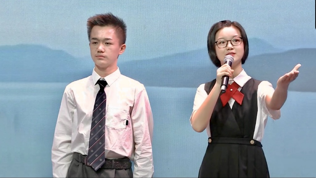 決賽中,我校選手精神飽滿,自信昂揚(yáng)。同學(xué)們以長(zhǎng)江為載體,誦揚(yáng)母親河的無(wú)私胸懷,抒發(fā)對(duì)祖國(guó)大好河山的熱愛(ài)。并從自己的成長(zhǎng)經(jīng)歷中感受長(zhǎng)江沿線近些年來(lái)的巨大變化,歌頌祖國(guó)的蓬勃發(fā)展和人民的美好生活,表達(dá)了建設(shè)祖國(guó)、實(shí)現(xiàn)中國(guó)夢(mèng)的少年自信和決心!