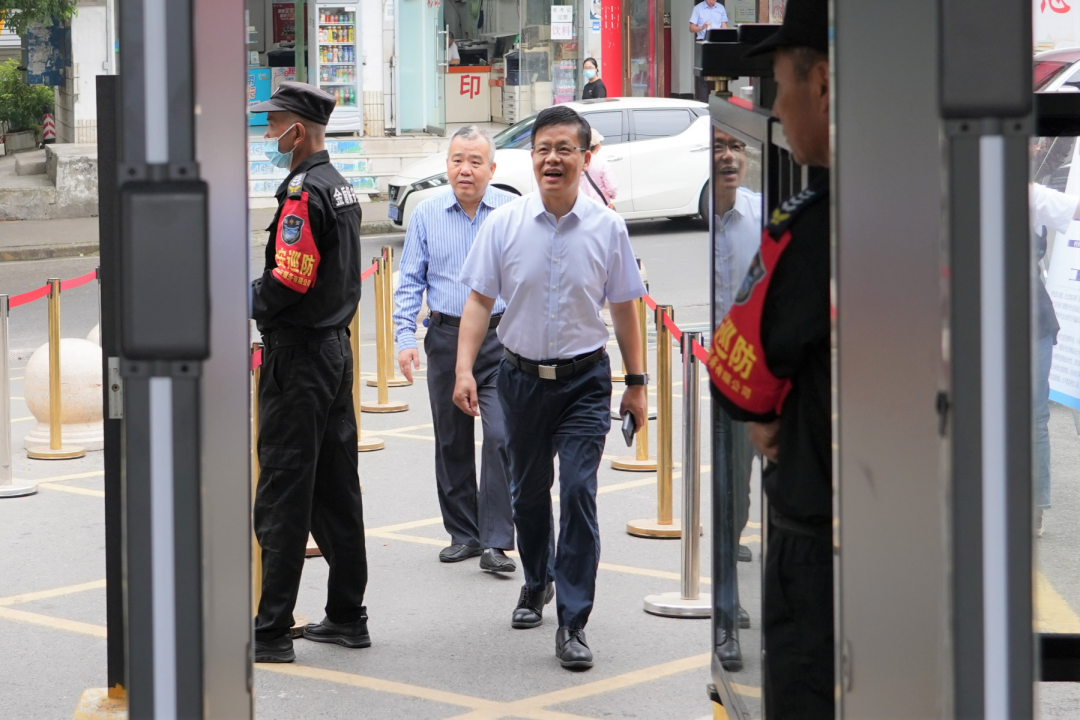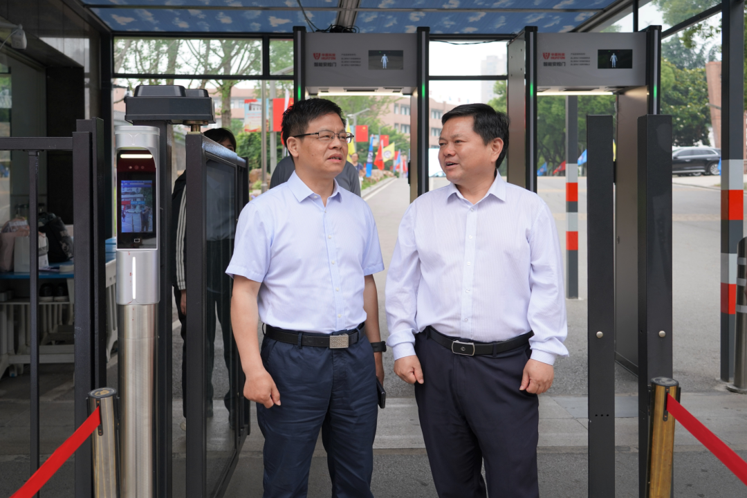 谷越實(shí)地查看了我校考點(diǎn)周邊環(huán)境、安檢設(shè)備、視頻監(jiān)控室、詳細(xì)了解考場(chǎng)布置、安全保衛(wèi)、試卷管理、考務(wù)人員配備、服務(wù)保障等準(zhǔn)備工作落實(shí)情況。