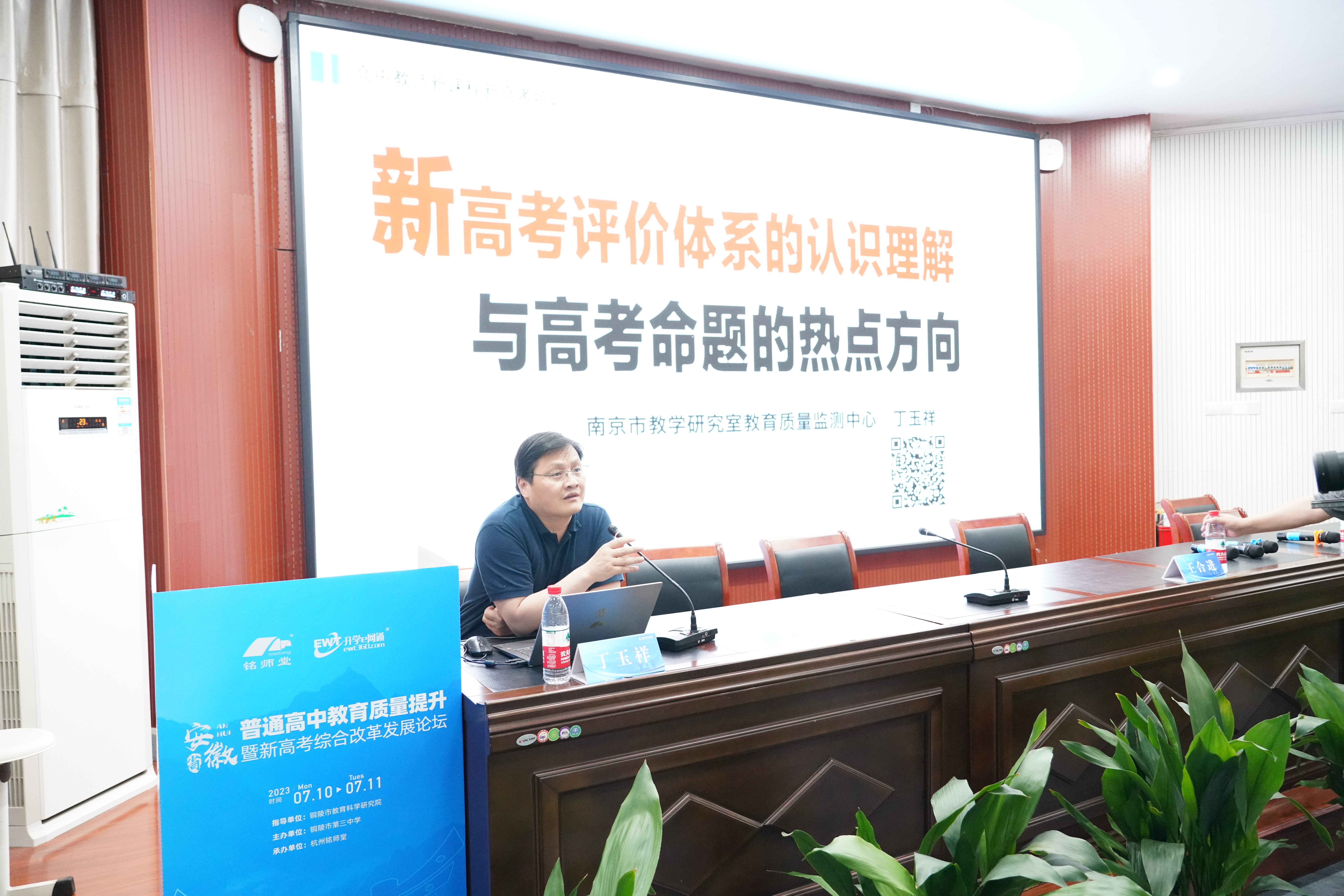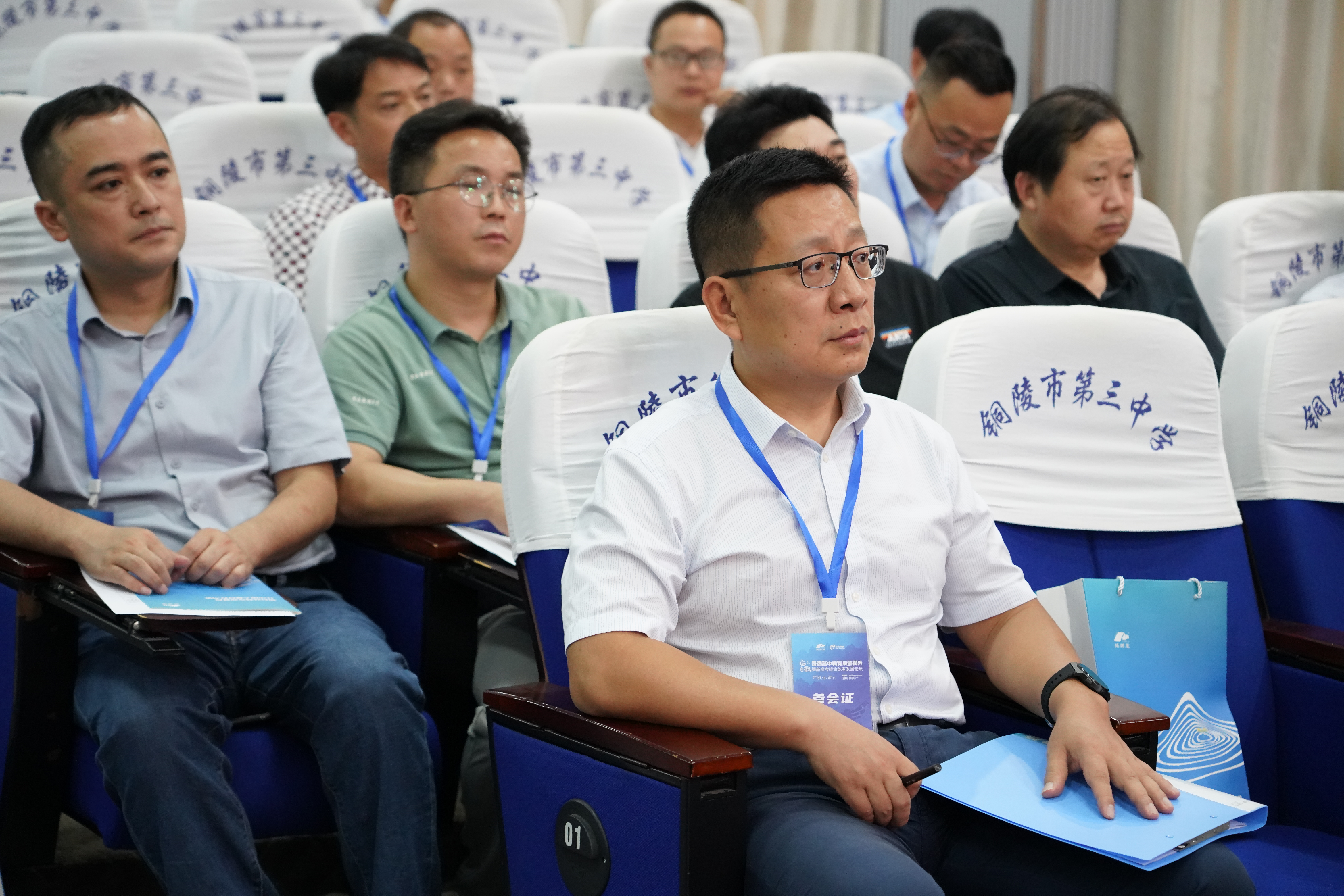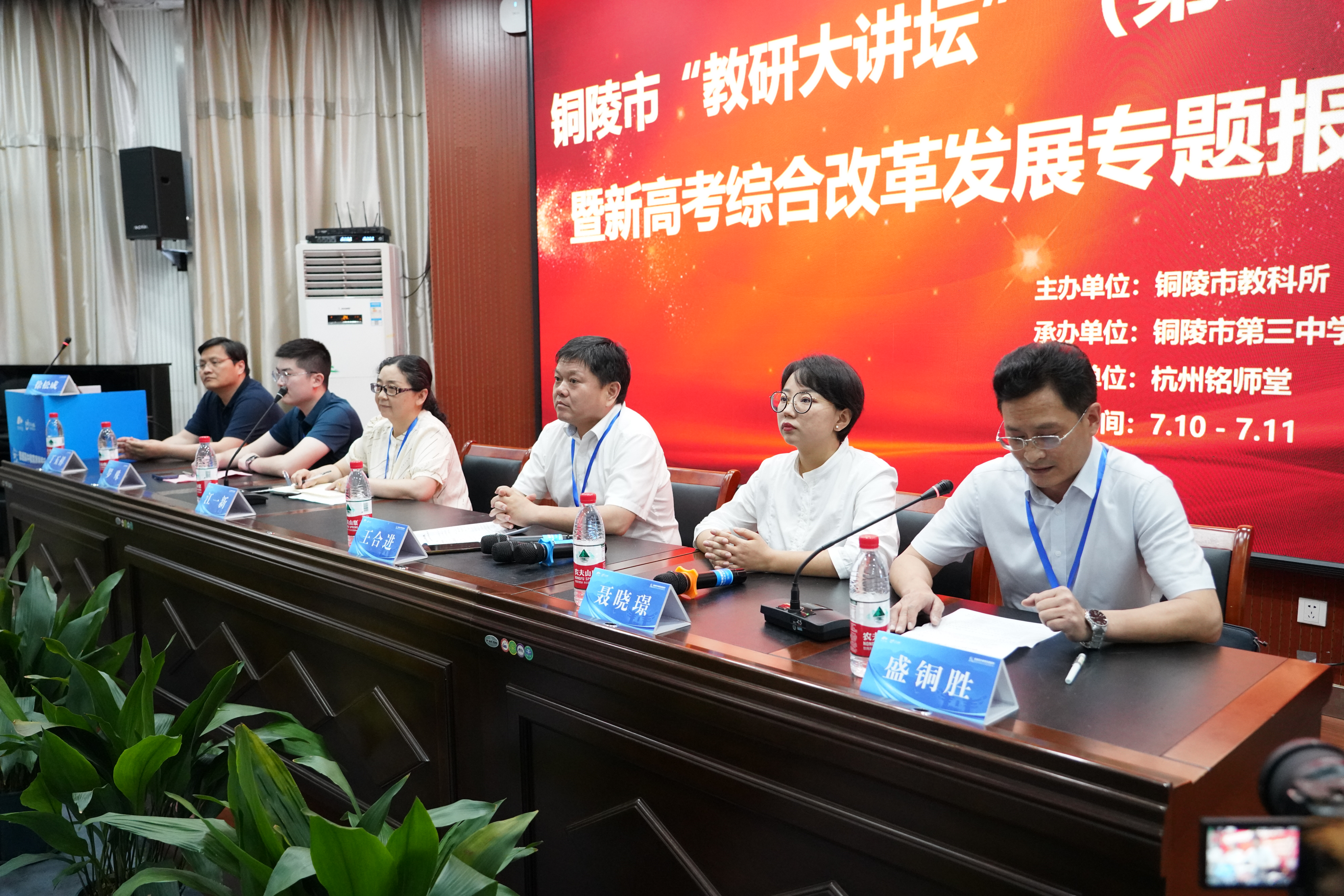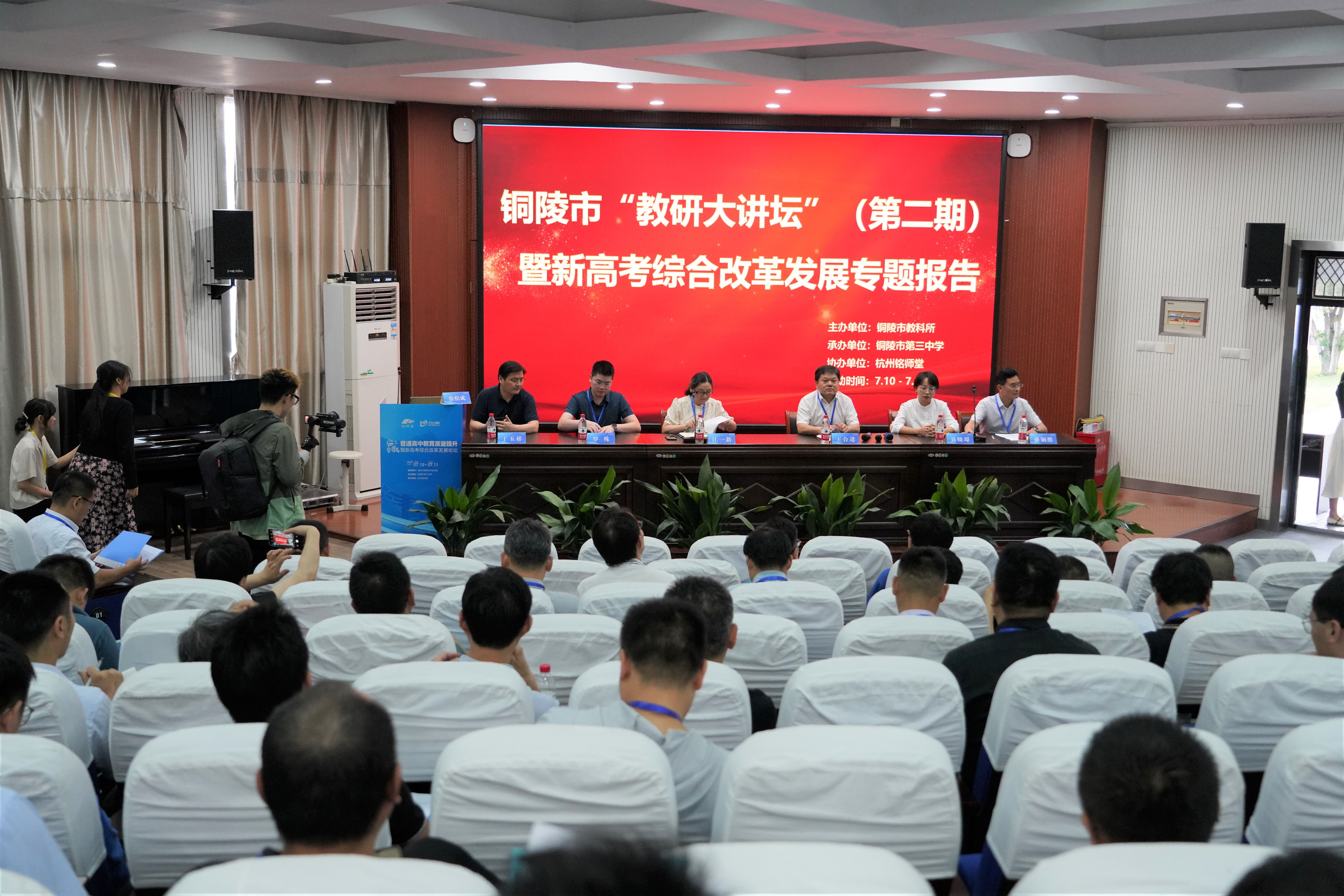 7月10日下午,由銅陵市教學(xué)科學(xué)研究所指導(dǎo)、銅陵市第三中學(xué)舉辦,杭州銘師堂信息科技有限公司協(xié)辦的安徽省普通高中教育質(zhì)量提升暨新高考綜合改革發(fā)展論壇在我校舉行,銅陵市教學(xué)科學(xué)研究所所長(zhǎng)江一新,杭州銘師堂信息科技有限公司總經(jīng)理羅殊,銅陵市第三中學(xué)黨委副書(shū)記、副校長(zhǎng)王合進(jìn)等領(lǐng)導(dǎo)出席會(huì)議,來(lái)自全省各地的省級(jí)示范性高中負(fù)責(zé)人及相關(guān)教學(xué)部門負(fù)責(zé)人約180人參加會(huì)議。銅陵市第三中學(xué)黨委委員、副校長(zhǎng)徐松成主持會(huì)議。