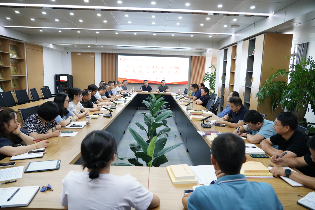 6月30日下午,銅陵三中2022——2023第二學(xué)期第五次黨政聯(lián)席會在躬行樓五樓會議室召開。校黨委副書記、副校長王合進(jìn),校黨委副書記張國榮,校黨委委員、副校長徐松成,校黨委委員、副校長章學(xué)標(biāo)出席會議,學(xué)校各處室部門負(fù)責(zé)人及年級部主任、黨支部書記、年級部部長參加會議,王合進(jìn)主持會議。