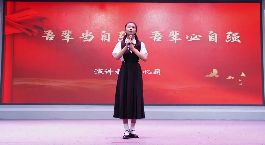 劉憶萌同學(xué)的演講題為《吾輩當(dāng)自強,吾輩必自強》。她深情回顧了革命前輩的青春擔(dān)當(dāng)和當(dāng)今新青年的奮勇作為,并結(jié)合自己作為志愿者和一名中學(xué)生的切身學(xué)習(xí)生活經(jīng)歷,抒發(fā)了對華夏崛起的新感悟、新思考。