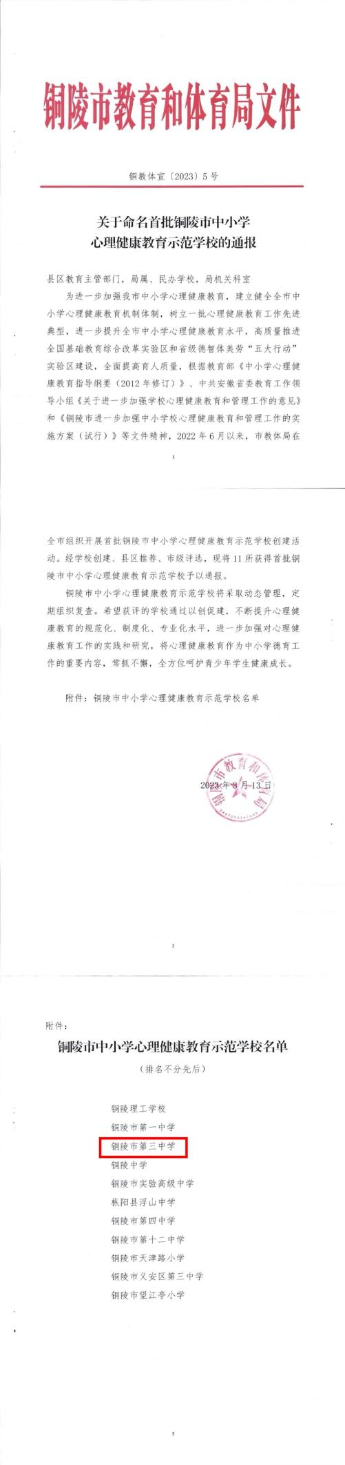 喜報|我校獲市教體局“銅陵市中小學(xué)心理健康教育示范學(xué)!笔谂