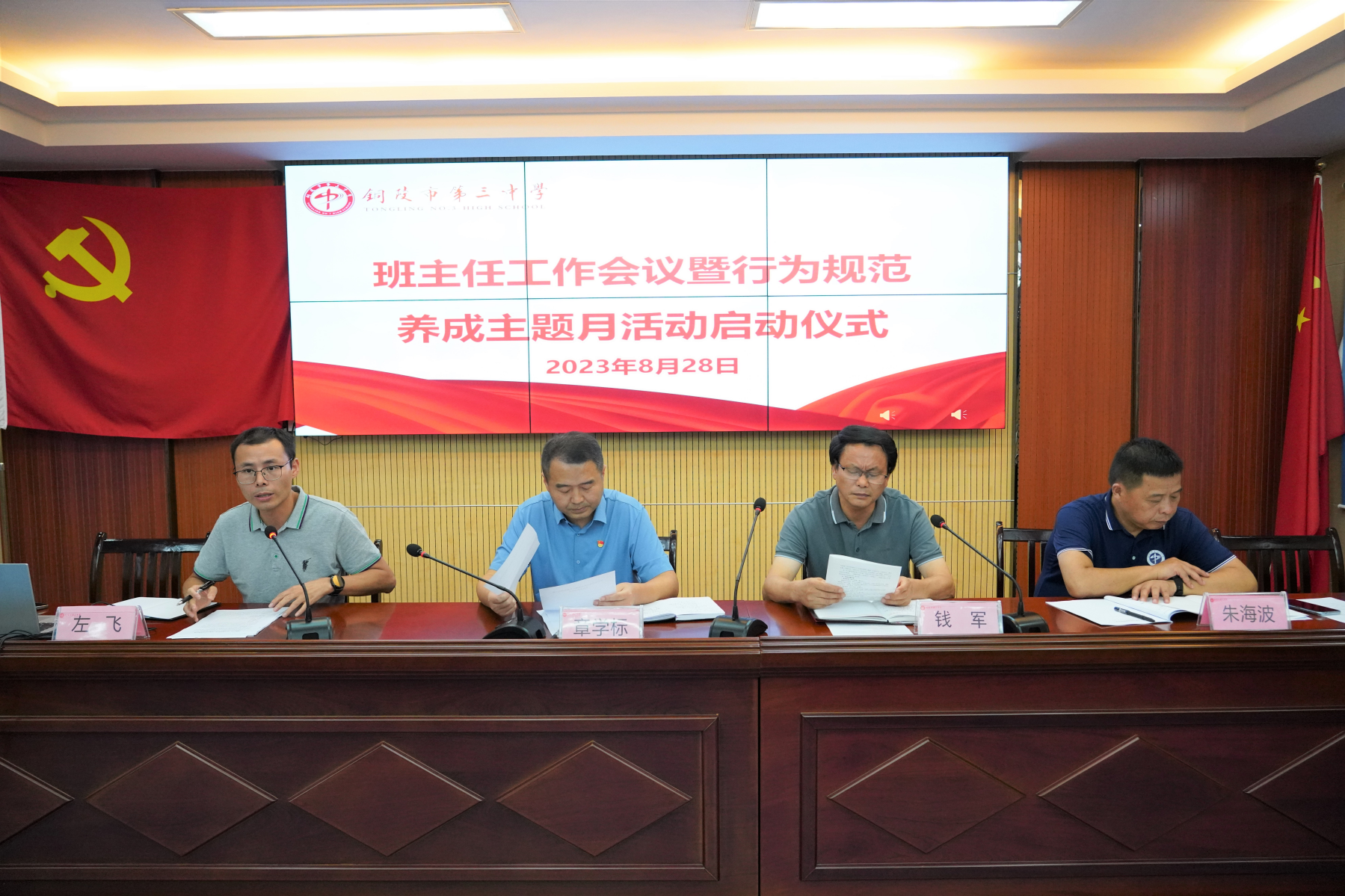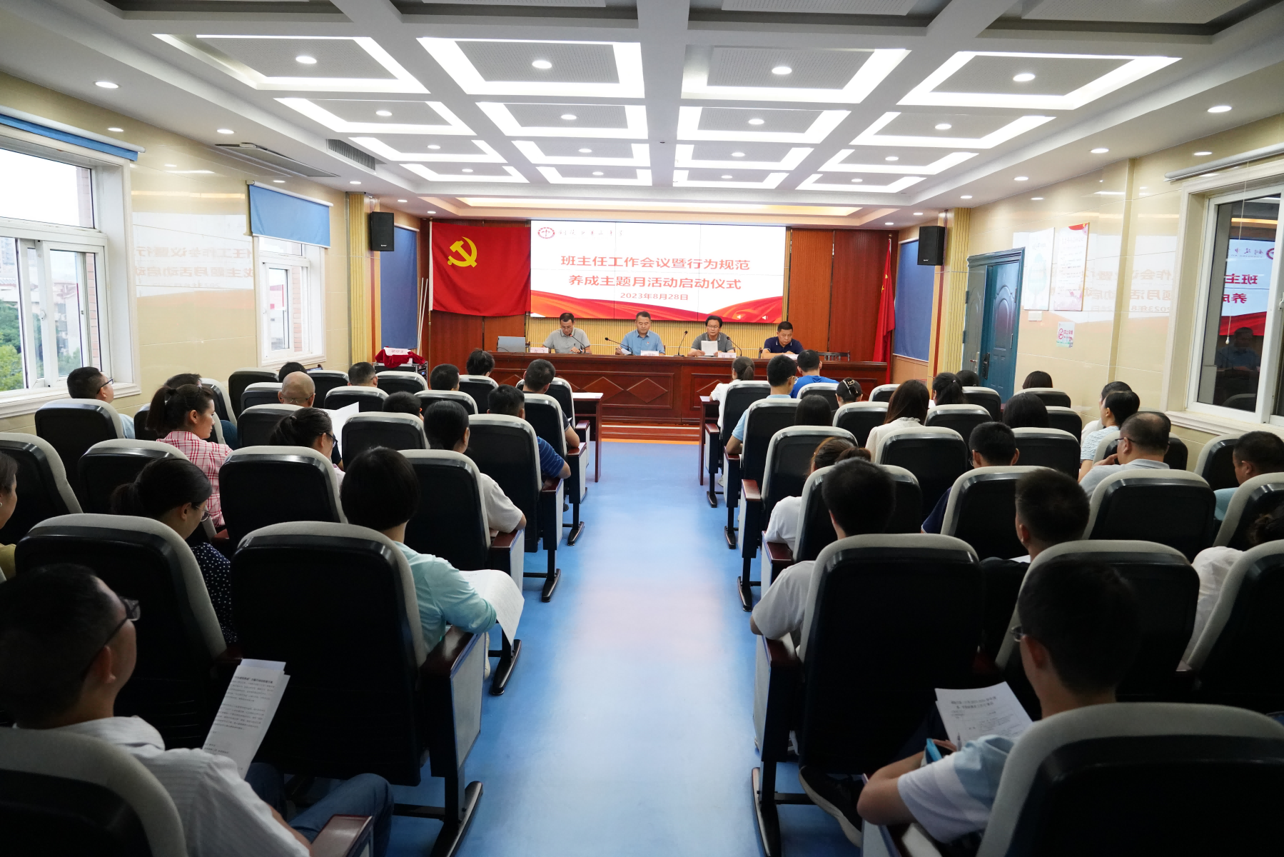 為進一步促進班級管理工作,加強班主任專業(yè)素養(yǎng)和德育隊伍的發(fā)展,明確新學期班主任育人工作的途徑,增強育人工作的實效性,8月28日下午,我校在躬行樓五樓黨員活動室召開新學期班主任開學工作會議暨行為規(guī)范養(yǎng)成月主題活動啟動儀式。校黨委委員、副校長章學標,教務處主任、高一級部主任錢軍,政教處副主任、高二級部主任左飛,高三年級德育部長朱海波和全體班主任出席活動,會議由左飛主持。