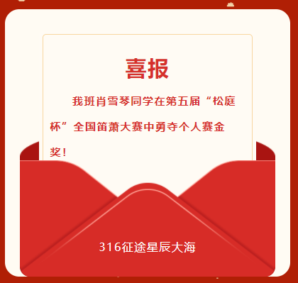 熱烈祝賀銅陵市第三中學(xué)316班肖雪琴同學(xué)在2023第五屆“松庭杯”全國笛簫邀請(qǐng)賽中榮獲個(gè)人賽金獎(jiǎng)!