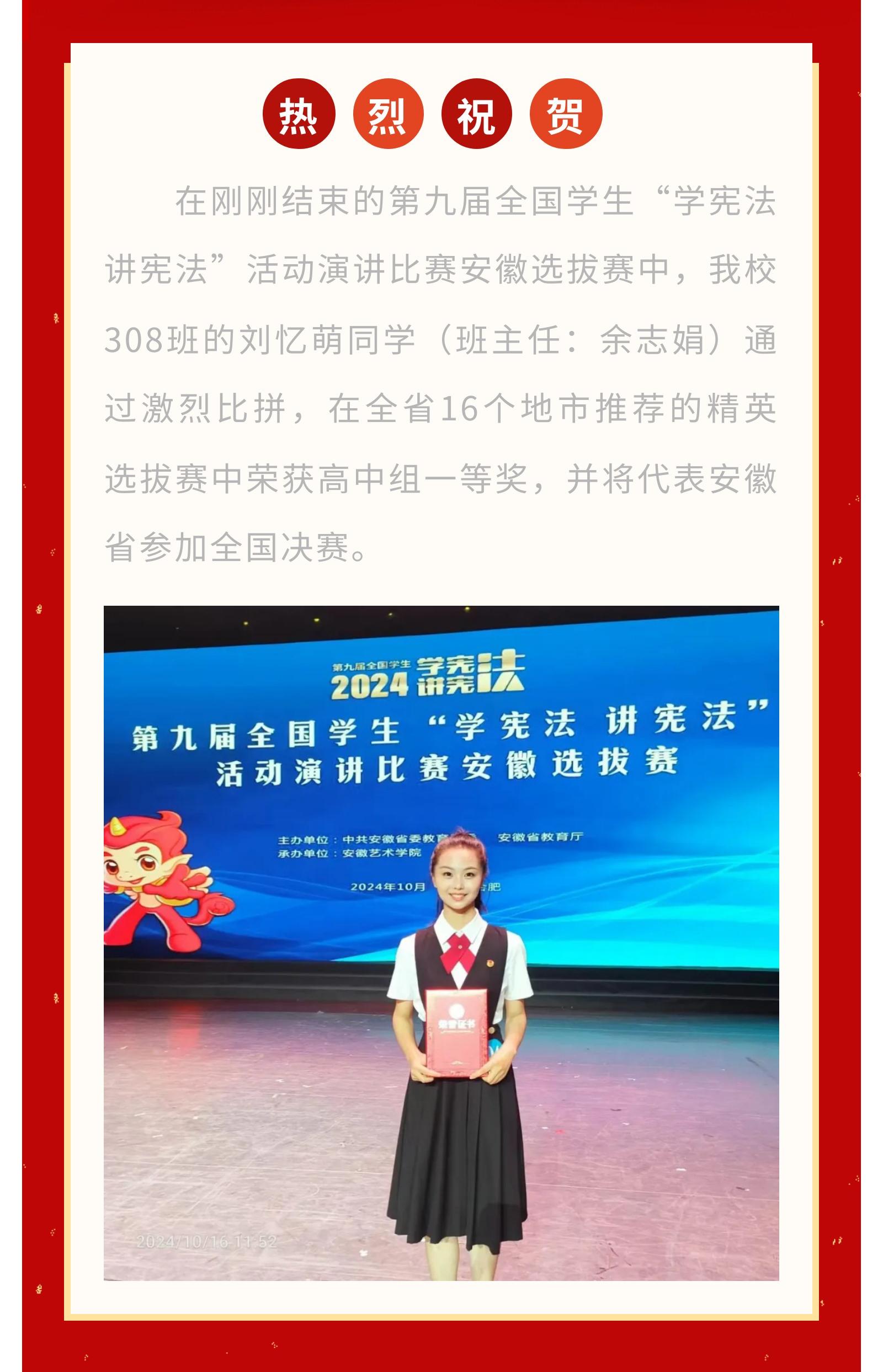 祝賀!我校劉憶萌同學(xué)榮獲省賽一等獎并將代表安徽省參加全國決賽