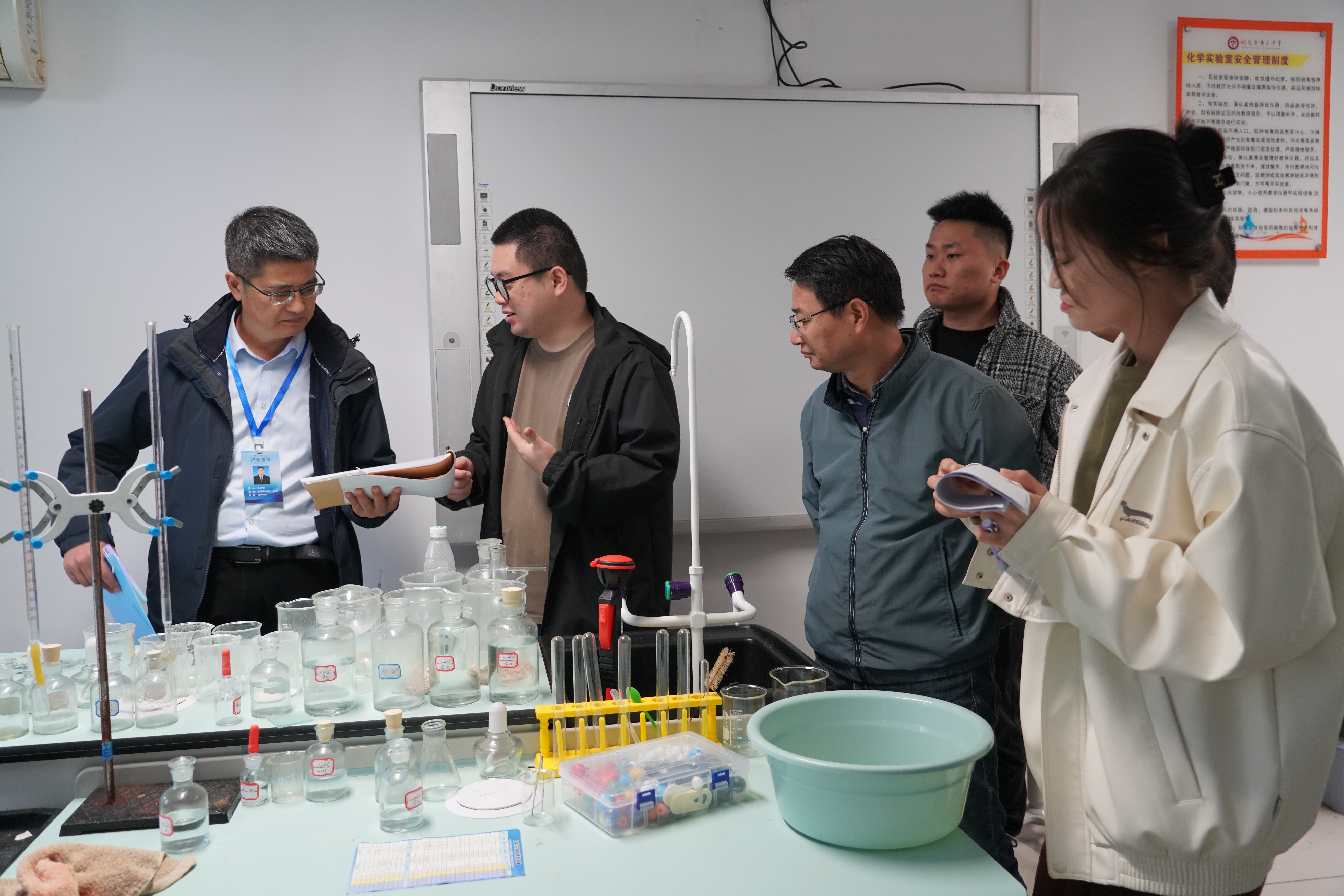 為進(jìn)一步加強(qiáng)實(shí)驗室安全管理,確保實(shí)驗教學(xué)和科研工作的順利進(jìn)行,10月28日校長張尤俊、教務(wù)處副主任方進(jìn)、各實(shí)驗室管理員以及設(shè)備安裝和維護(hù)企業(yè)工作人員對物理、化學(xué)和生物實(shí)驗室進(jìn)行了全面的自檢自查。此次檢查旨在發(fā)現(xiàn)并解決存在的問題,進(jìn)一步提升實(shí)驗室的安全管理水平和使用效率。