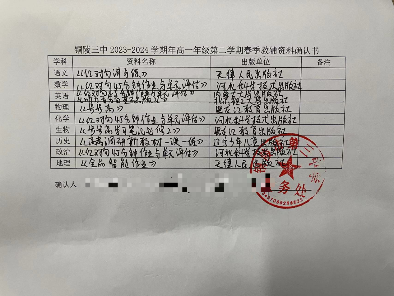2024年1月4日—2024年1月7日,高一年級部在銅陵三中校園網(wǎng)上對教輔資料進行公開招標。近日對投標單位進行資格審查,符合條件的一共有6家單位,符合開標要求。評議小組對符合條件的單位提供的教輔資料進行打分,年級部家長代表現(xiàn)場拆封資料報價單,并做出選擇,確定選擇以下資料提供給各班級學生選擇使用,現(xiàn)將具體情況公示如下: