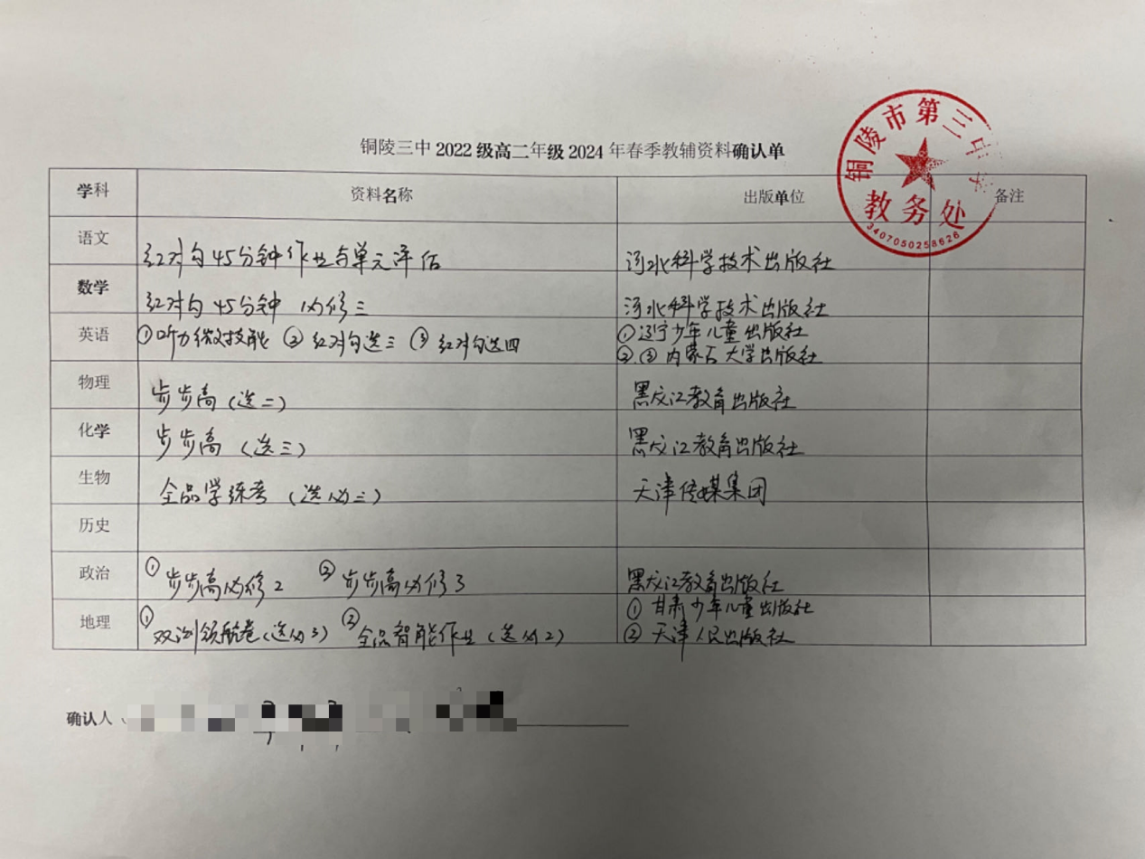 2024年1月4日—2024年1月7日,高二年級部在銅陵三中校園網(wǎng)上對教輔資料進行公開招標。近日對投標單位進行資格審查,符合條件的一共有6家單位,符合開標要求。評議小組對符合條件的單位提供的教輔資料進行打分,年級部家長代表現(xiàn)場拆封資料報價單,并做出選擇,確定選擇以下資料提供給各班級學生選擇使用,現(xiàn)將具體情況公示如下: