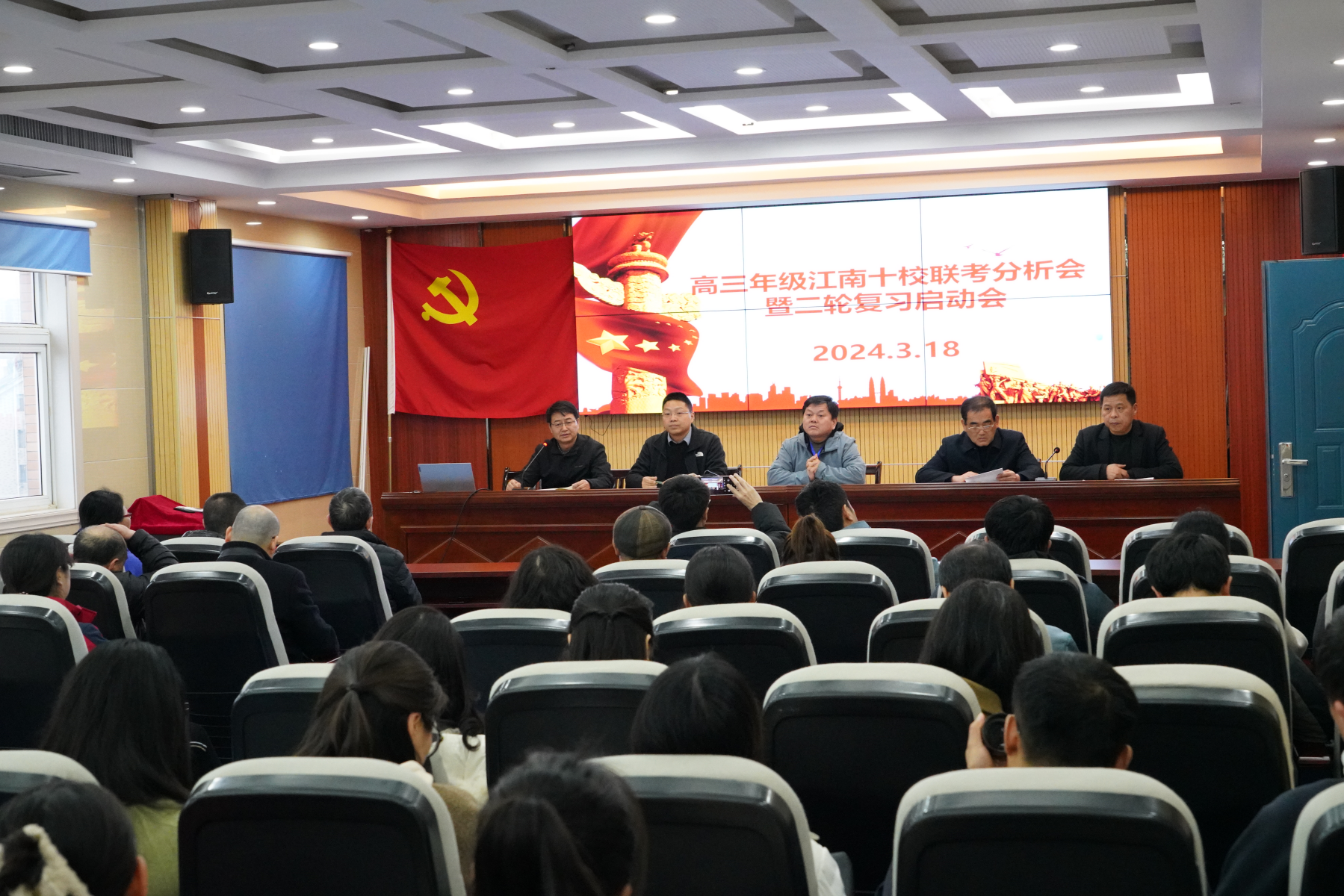 3月18日下午,高三年級部在黨員活動中心舉辦了“江南十校”分析會暨二輪復(fù)習(xí)啟動會。此次會議旨在全面總結(jié)近期聯(lián)考成績,分析存在的問題,并部署下一階段的教學(xué)和管理工作,為即將到來的高考沖刺做好充分準備。校黨委副書記、副校長王合進,校黨委副書記張國榮,級部主任王俊朝,德育部長朱海波,各相關(guān)處室領(lǐng)導(dǎo)及級部工作人員,高三級部全體班主任和備課組長出席了此次會議。會議由教學(xué)部長方進主持。