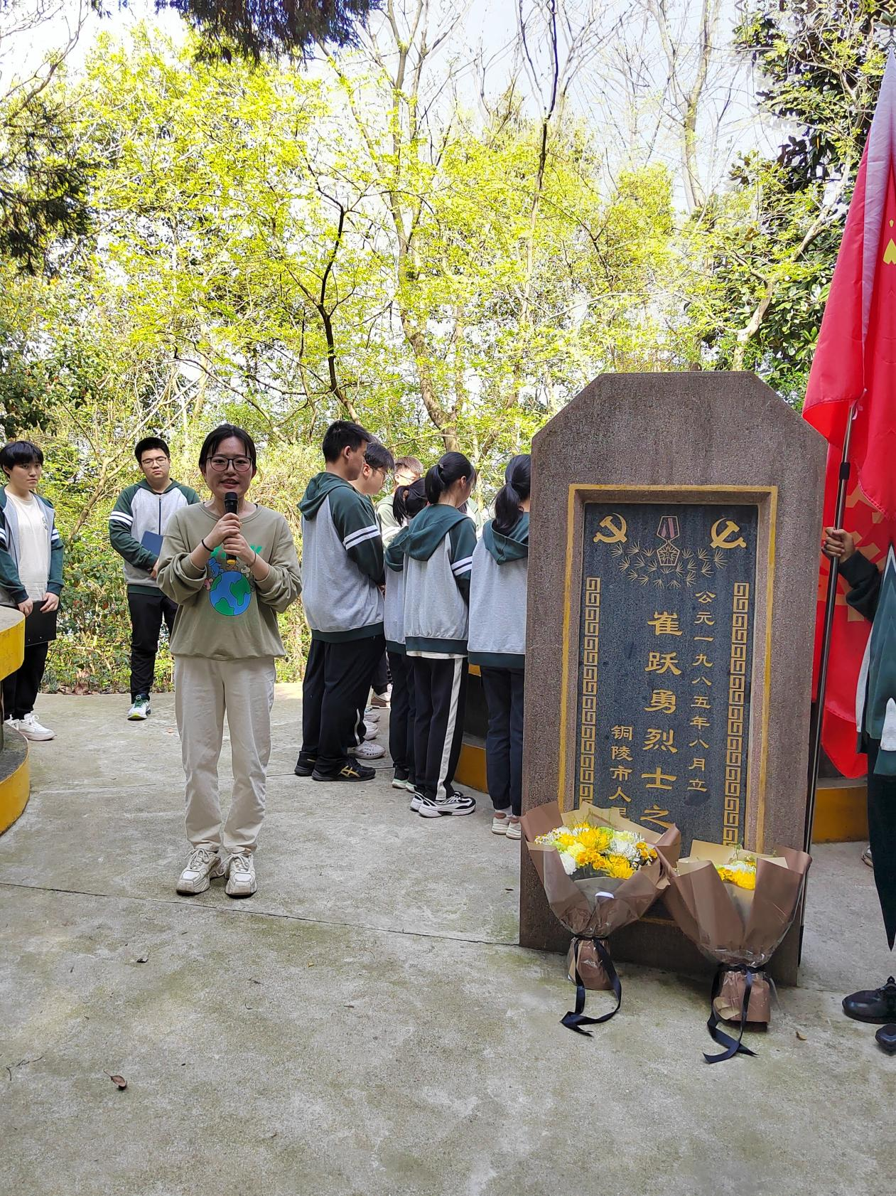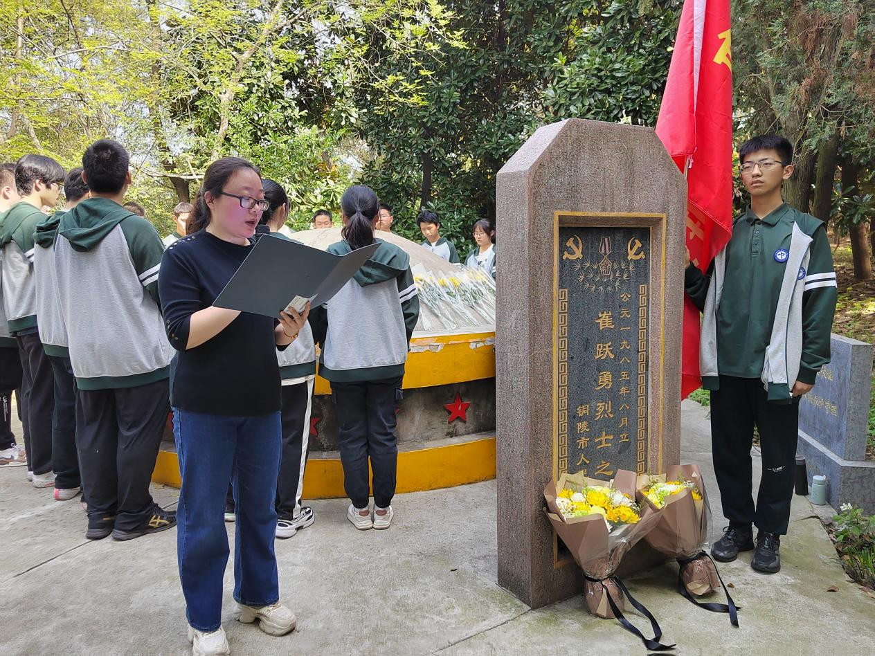 祭奠崔躍勇烈士后,全體師生來到烈士紀念塔前向烈士敬獻鮮花,緩步繞行,瞻仰烈士紀念碑,表達對烈士們的深切緬懷之情。