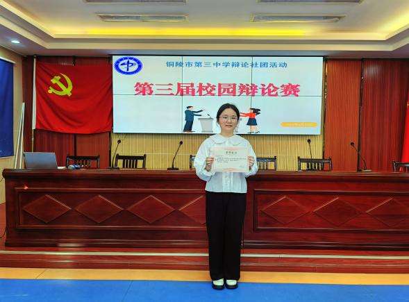隨后,評(píng)委老師們?yōu)楂@勝團(tuán)隊(duì)和優(yōu)秀社員頒發(fā)獎(jiǎng)狀和獎(jiǎng)品。徐云老師在點(diǎn)評(píng)時(shí)強(qiáng)調(diào):辯論賽不僅是一場(chǎng)知識(shí)的競(jìng)技,更是一次思想的碰撞和個(gè)性的展示。辯論的本身就是鍛煉心理素質(zhì),在面對(duì)壓力和挑戰(zhàn)時(shí)能夠保持鎮(zhèn)定,勇敢地應(yīng)對(duì)。通過(guò)這次辯論賽,同學(xué)們對(duì)苦學(xué)和樂(lè)學(xué)有了更深入地理解。不僅展現(xiàn)了自己的口才和思辨能力,還對(duì)學(xué)習(xí)態(tài)度有了更深刻的認(rèn)識(shí)。在這場(chǎng)比賽中,你們學(xué)會(huì)了團(tuán)隊(duì)合作,你們快速思考、闡述觀點(diǎn)、回應(yīng)質(zhì)疑,用清晰、準(zhǔn)確、有說(shuō)服力的語(yǔ)言表達(dá)自己的想法,無(wú)論在課堂上還是在生活中,這都是重要的技能。