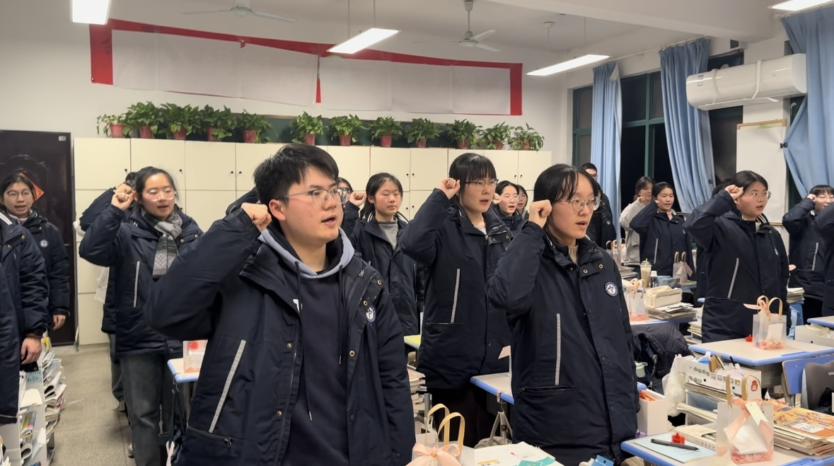 各班級結(jié)合學(xué)生需求,精心設(shè)計百日倒計時活動。組織開展“百日沖刺”主題班會課,邀請班級科任教師為學(xué)子加油打氣;書寫心愿,放飛夢想;徒步行走,磨礪意志。教室內(nèi)外,勵志標(biāo)語高懸,戰(zhàn)鼓聲聲回蕩,各班學(xué)子高舉右拳,以班級為單位莊嚴(yán)宣誓:“百日磨劍,今朝試鋒!拼搏到底,我必成功!”鏗鏘誓言如春雷激蕩,彰顯出迎戰(zhàn)高考的堅定信心。
