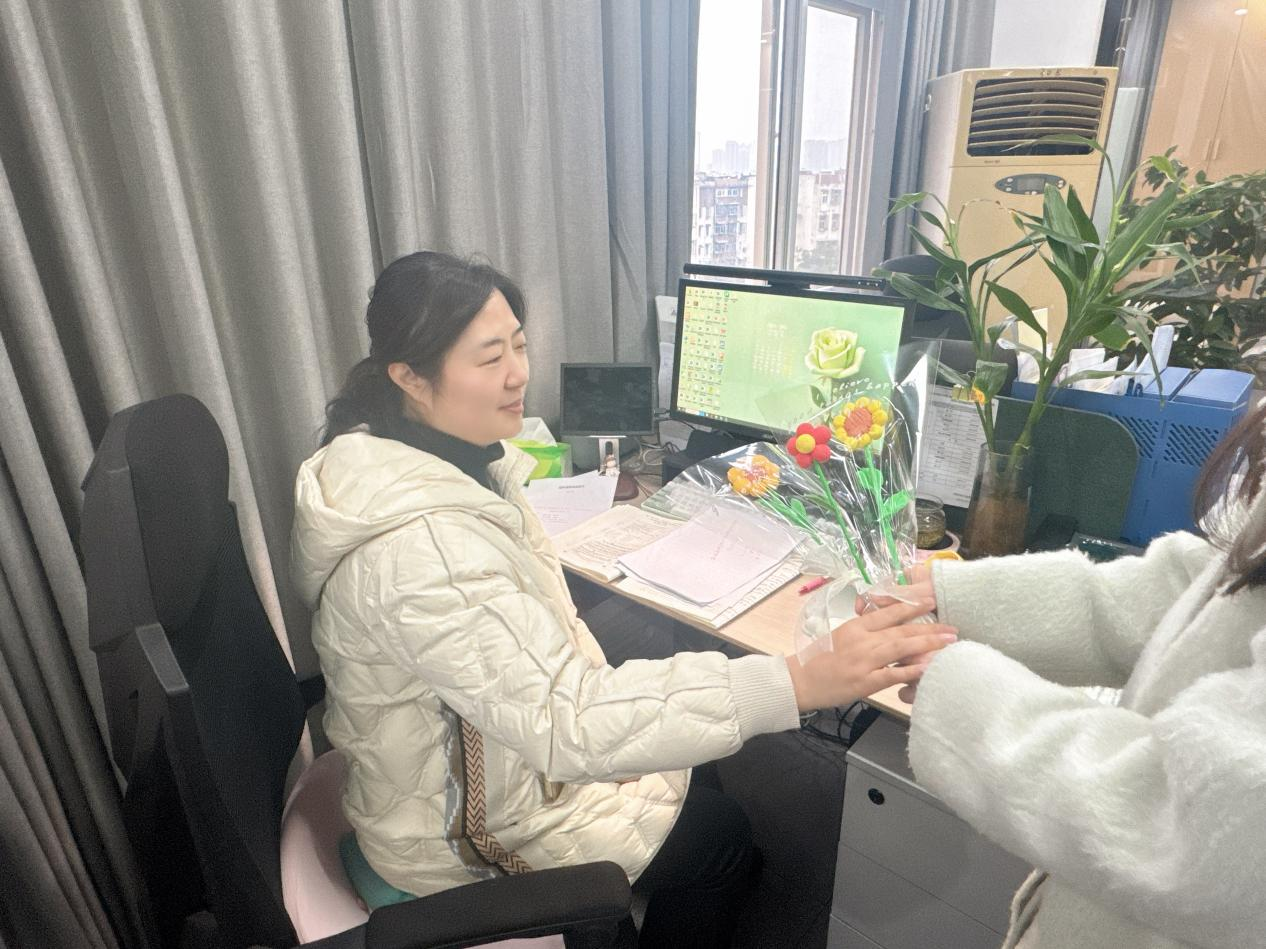 為了讓堅守在崗位的女教職工同樣感受到節(jié)日的關(guān)懷,女工委特別策劃了“驚喜送花”環(huán)節(jié),將精心包裝好的花束送至她們手中。一束束花承載著祝福與敬意,在校園中傳遞著女性之間的支持與共情。