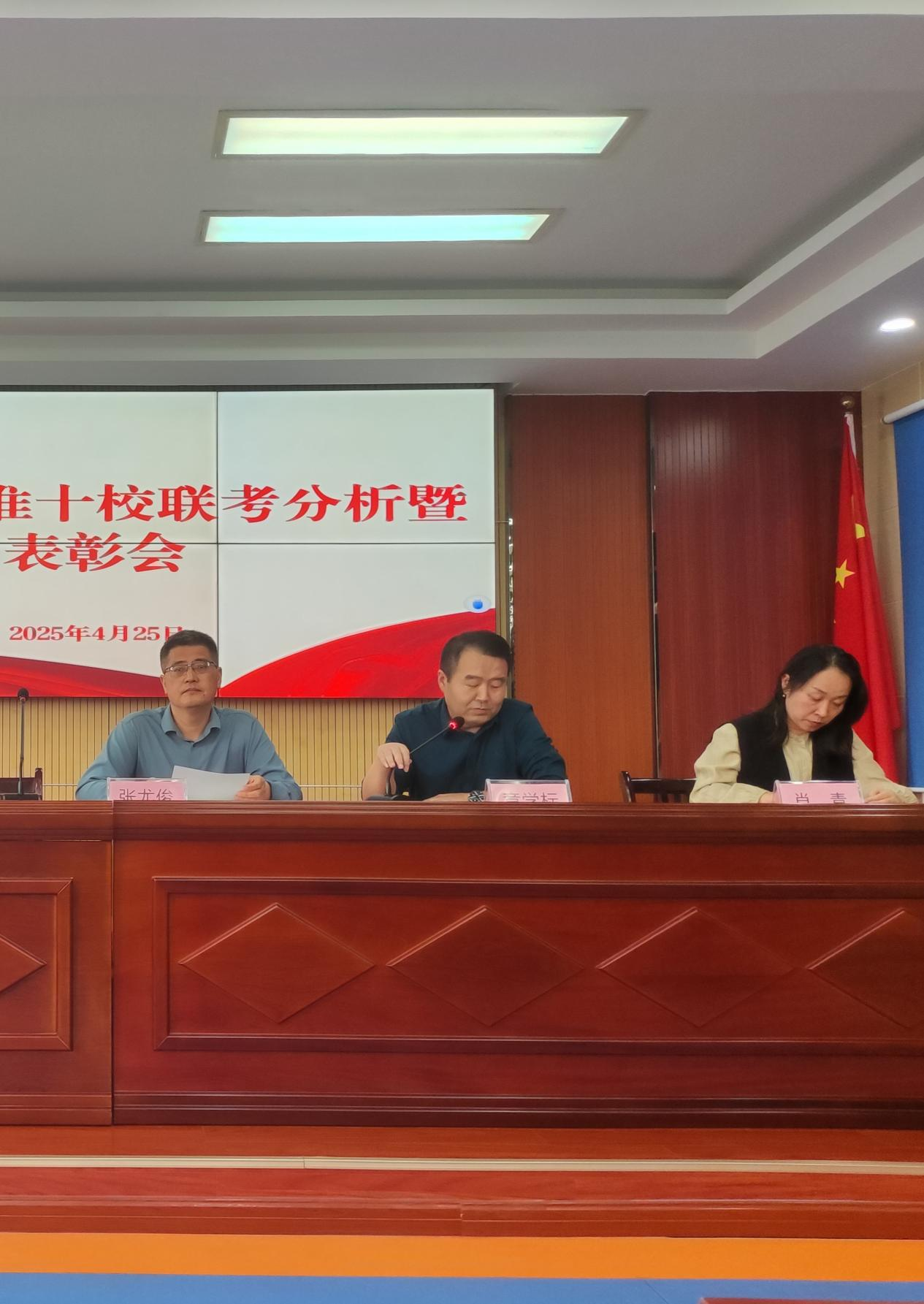 為精準(zhǔn)分析學(xué)情與教情,進(jìn)一步提升教育教學(xué)質(zhì)量。4月25日下午,高三級部召開 "江淮十校" 聯(lián)考分析暨表彰會。校黨委副書記、校長張尤俊,校黨委委員、副校長章學(xué)標(biāo),級部主任左飛,教學(xué)部長肖青,德育部長饒衡山及全體高三教師出席會議。會議由左飛主持。