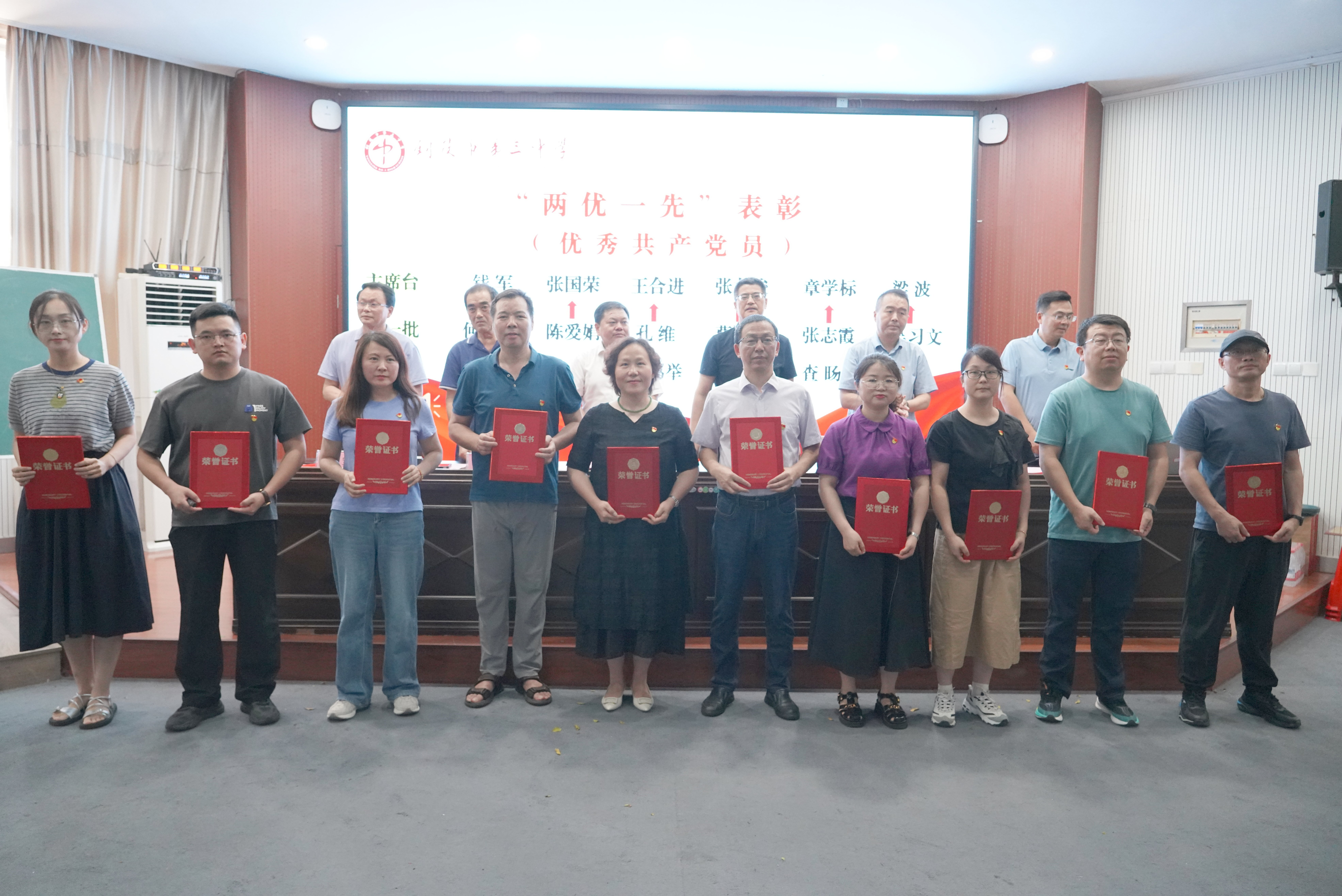 黨委副書記、校長張尤俊宣讀了優(yōu)秀共產(chǎn)黨員、優(yōu)秀黨務工作者和先進黨支部的表彰決定。他希望受表彰的個人珍惜榮譽、再創(chuàng)佳績、再立新功。勉勵廣大黨員教師和全體教職工要以受表彰的先進個人為榜樣,以更加飽滿的熱情、更加昂揚的斗志、更加優(yōu)良的作風,為學校高質(zhì)量發(fā)展貢獻更多力量。校黨委班子成員為受表彰的 21名優(yōu)秀共產(chǎn)黨員, 3名優(yōu)秀黨務工作者, 1個先進黨支部代表頒發(fā)了榮譽證書,3名受表彰的代表作了交流發(fā)言。